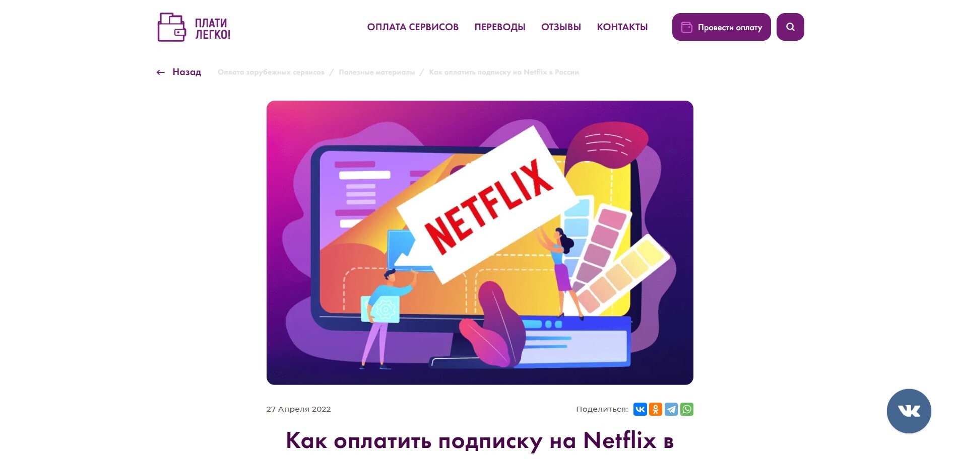 5. Плати Легко — платформа для оплаты Нетфликс подписки со скидкой