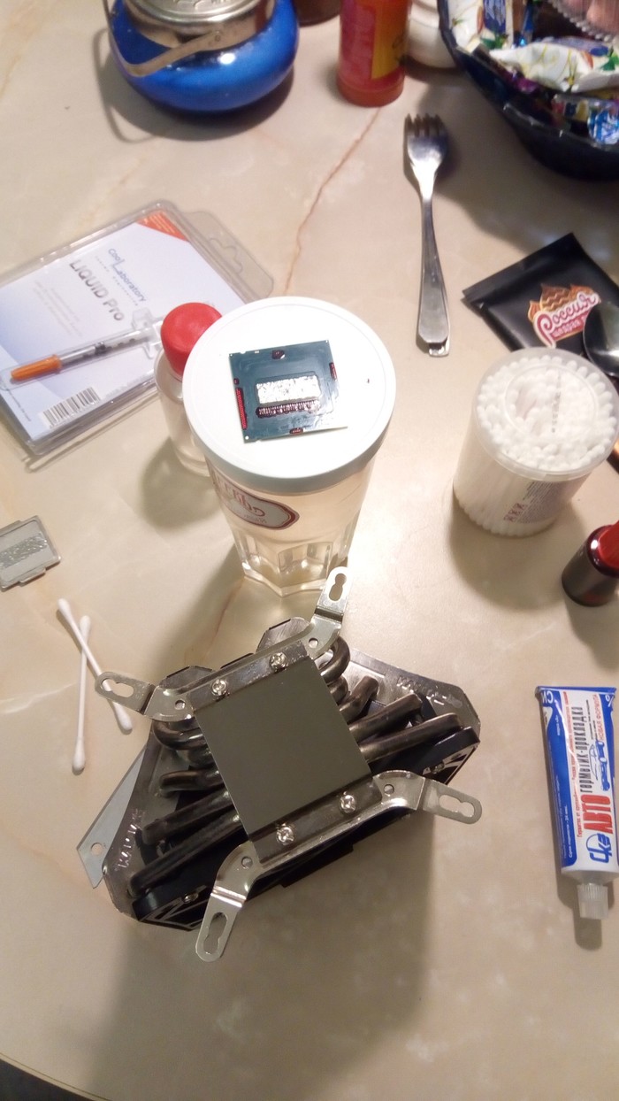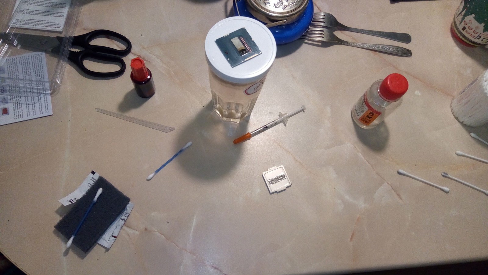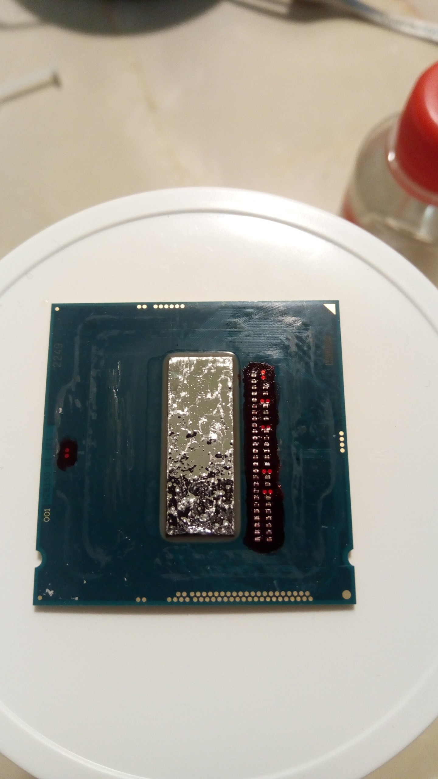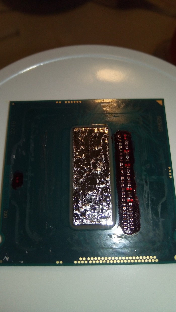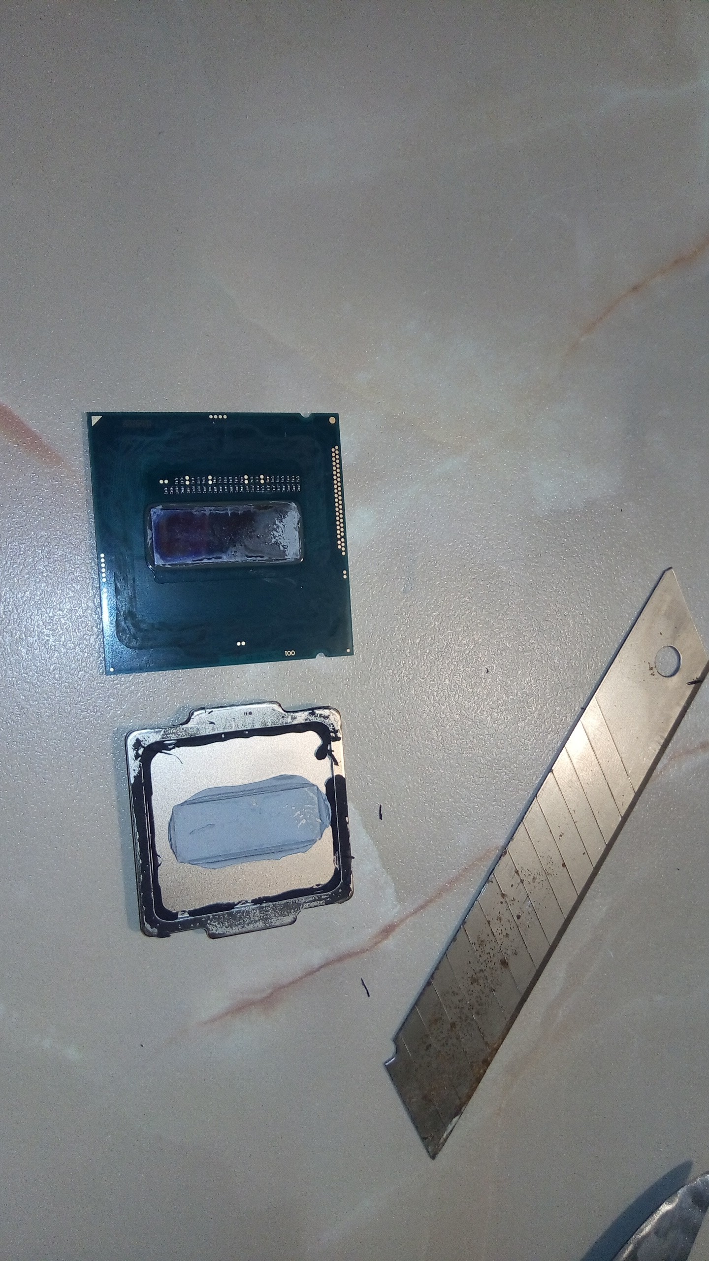 Хай всем пикабушникам-айтишникам. Был у меня прекрасный проц, который радовал меня своей работой и производительностью последние 4-5 лет. Пока в один из вечеров, когда проходя очередную серию квестов ведьмака 3 не словил синий экран смерти и перезагрузку. Начал разбираться и методом проб и тестирования заметил что синий экран возникает при достижении температуры процессора на отметке 70 градусов. Перво наперво решил что пора чистить системник. Вкрыл, все почистил, положил новую термопасту. Но, не тут то было, проблема никуда не ушла. Начитавшись форумов и насмотревшись видео, решил сделать скальпирование. Заказав жм с оф сайта, стал ждать его доставку целый месяц, играя только в пасьянс. Наконец, когда получил жм, пришел радостный домой, снял процессор и приступил к неторопливому скальпированию. Герметик резался легко, почти без усилий. Лезвие канцелярского ножа хорошо заходило под распред.крышку. Но я не торопился и делал все предельно аккуратно, далеко нож не засовывал, чтобы не срезать смд элементы под крышкой. После снятия крышки, увидел знаменитую интеловскую жевачку, превратившуюся практически в камень. Все осторожно очистил ватными палочками с изопропиловым спиртом. Остатки герметика уделял мягкой пластиковой картой и ногтем. После чего нанес на смд-шки и контакты под крышкой цапонлак. Наносил в четыре слоя как в инструкции, с промежуточной просушкой 20мин. и ждал полного высыхания 1 час. Затем нанес ватными палочками жм на кристал и на крышку. Нанес герметик на крышку и поставил ее по старым следам от герметика на текстолит цп. Установил проц в соккет, аккуратно прижал, придерживая крышку, чтобы не сместилась. Нанес термопасту, поставил радиатор на место. Но мои худшие опасения сбылись. Комп перестал загружаться. Что только не пробовал, и менял местами, чистил оперативку, сбрасывал биос, менял блок питания, все есессно с отключением питания и отсоединенной переферией, чисто мать, проц, оперативка и бп. Носил в ближайший сц олвико, там сказали что прошили биос, но это не помогло. В понедельник поеду к знакомому, у него тоже система на 1150. Буду выяснять что накрылось самостоятельно. Прошу подсказки, что можно еще попробовать сделать до понедельника? Где в Тольятти если что занимаются ремонтом цпу?