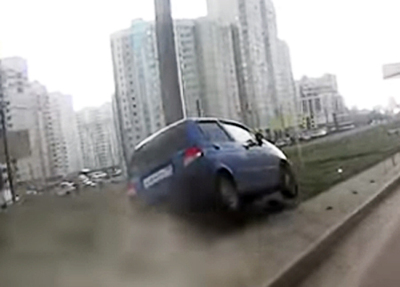 Его просто с дороги выкинуло. На этой неровности даже на 40 км/ч швыряет прилично, а на 100-ке да ещё матиз - результат известен