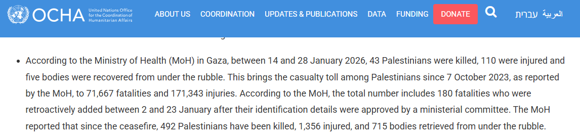 Так то на 28 января (https://www.unrwa.org/resources/reports/unrwa-situation-repo...) Ministry of Health in Gaza насчитало уже 71,667 погибших палестинцев.