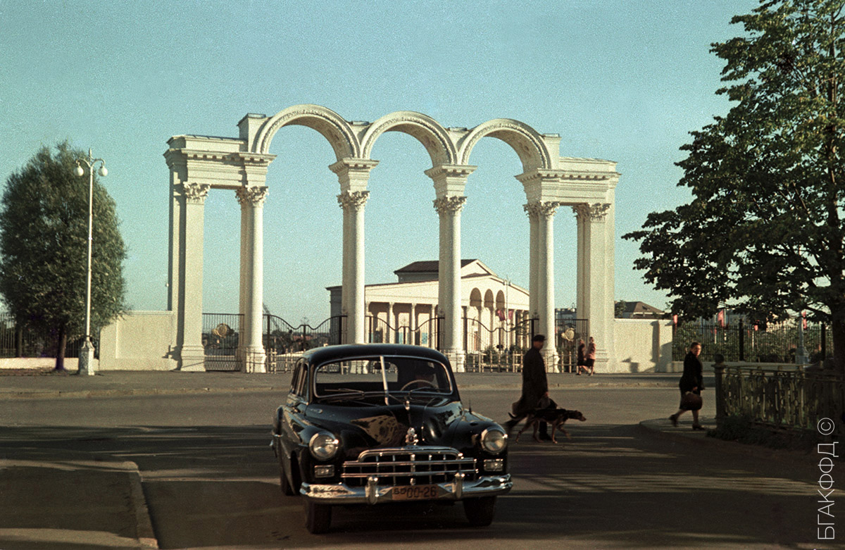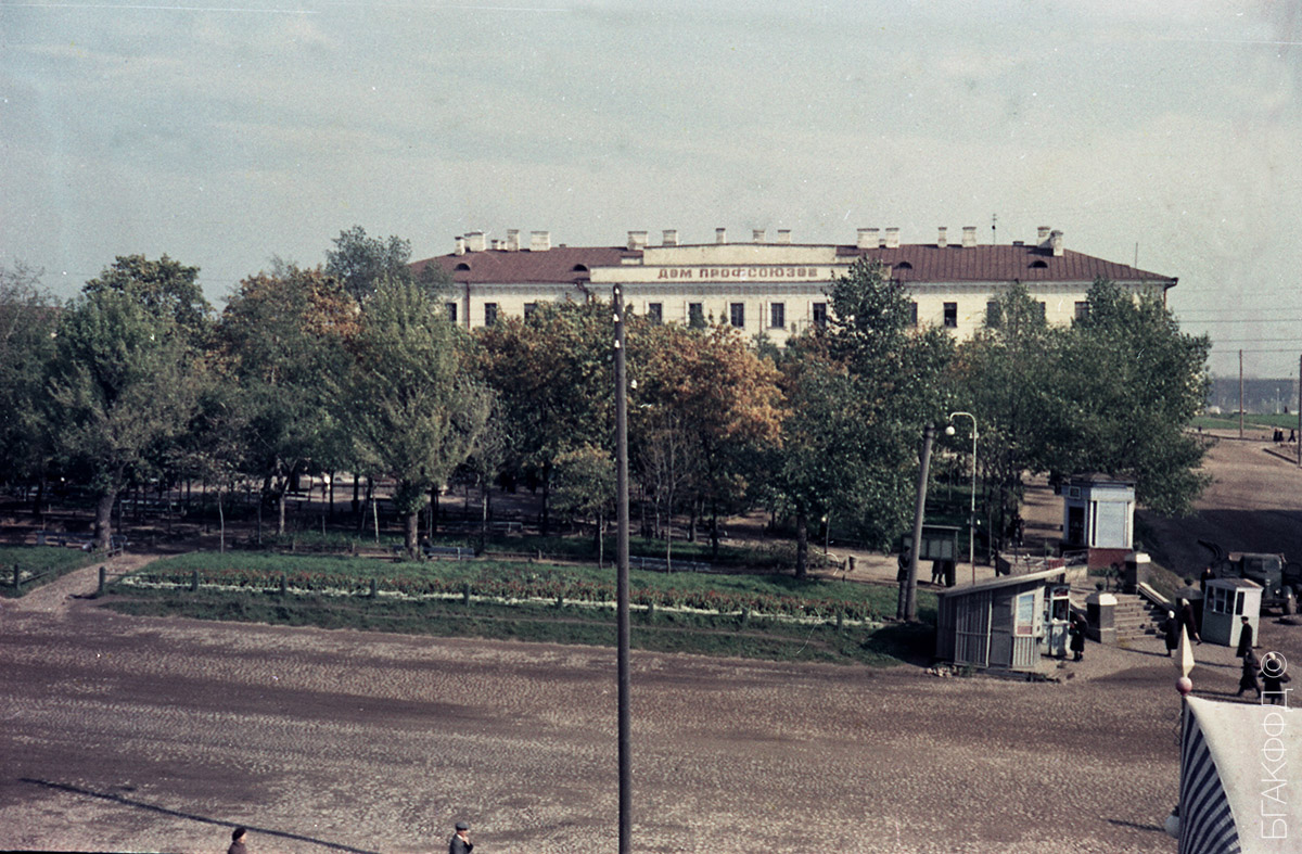 Вид на сквер и здание Дома профсоюзов на площади Свободы. 1953−1955 годы.