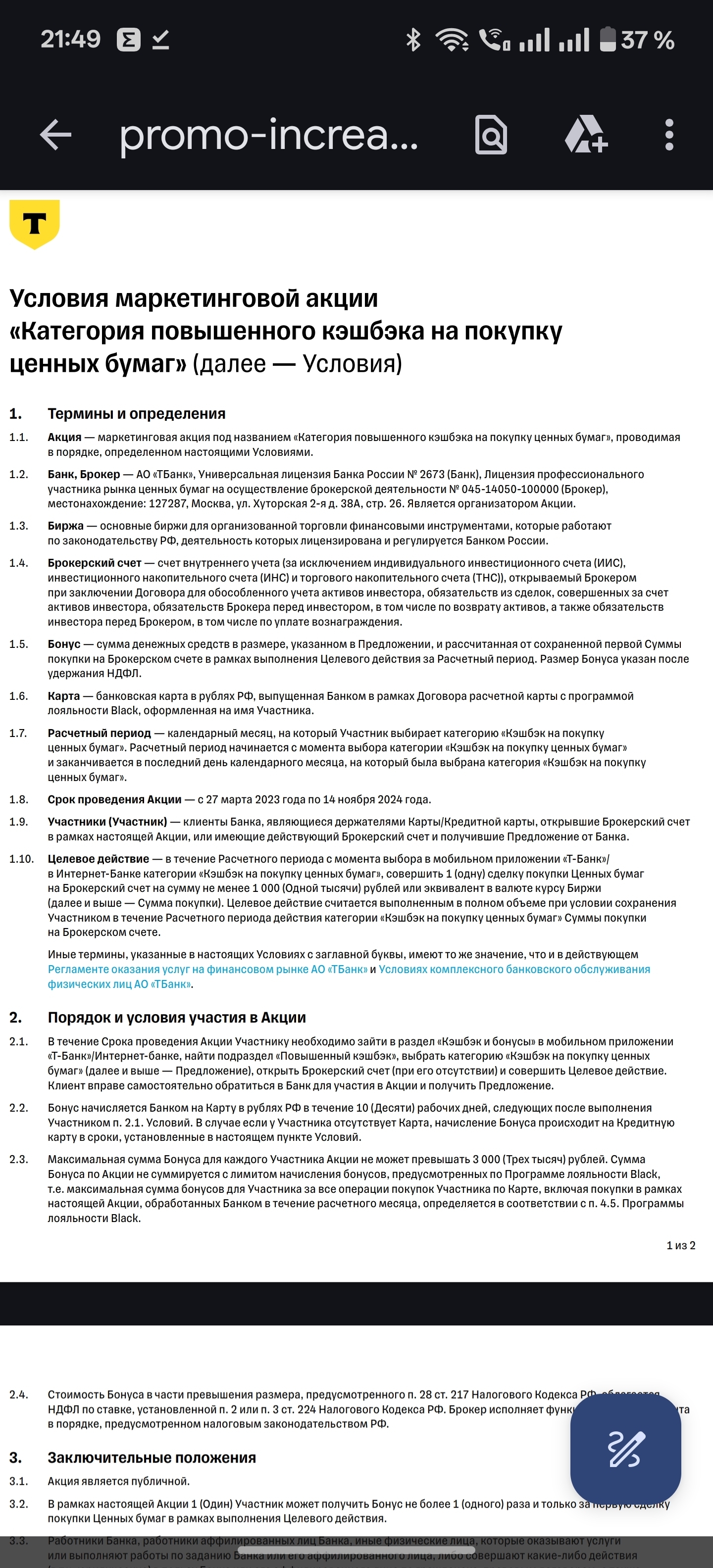 В октябре мне обещали 30% кэшбэк до 3000 при пополнении Т инвестиций. У моих родственников были аналогичные акции, только 70% и 100% кэшбэк.