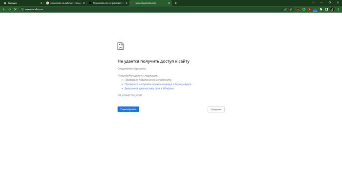 Хотел скачать несколько модов, и не смог зайти на Нексус. При попытке зайти на сайт сбрасывается соединение.