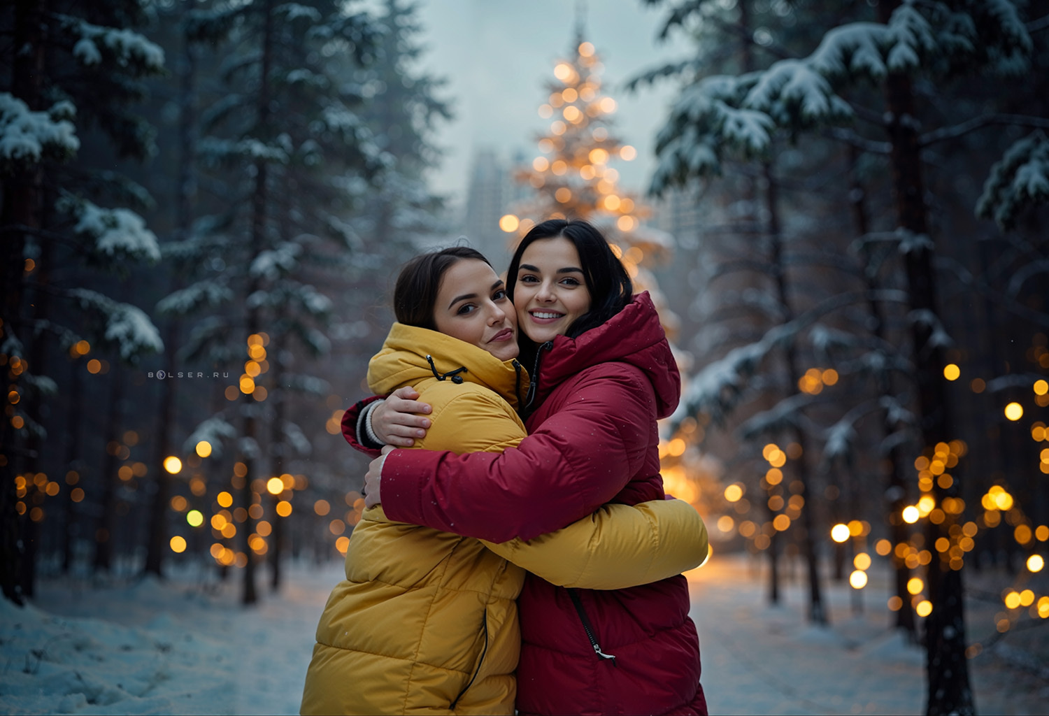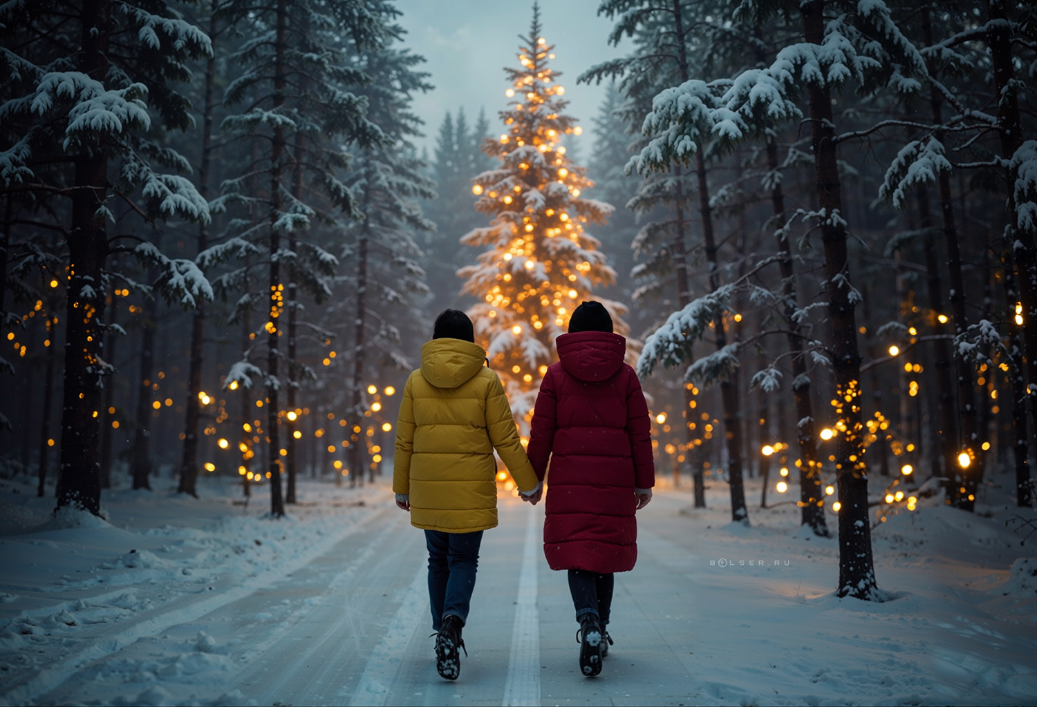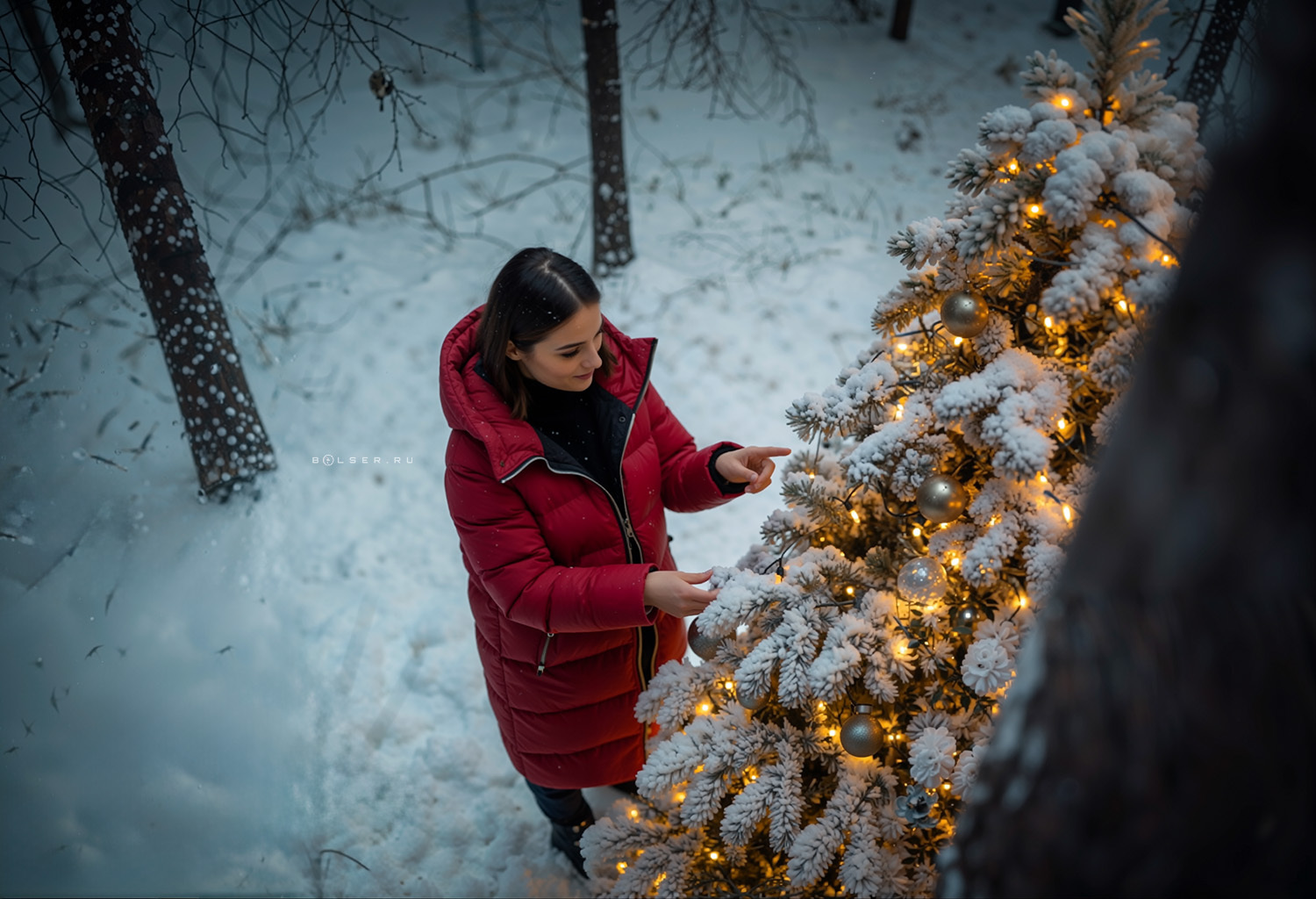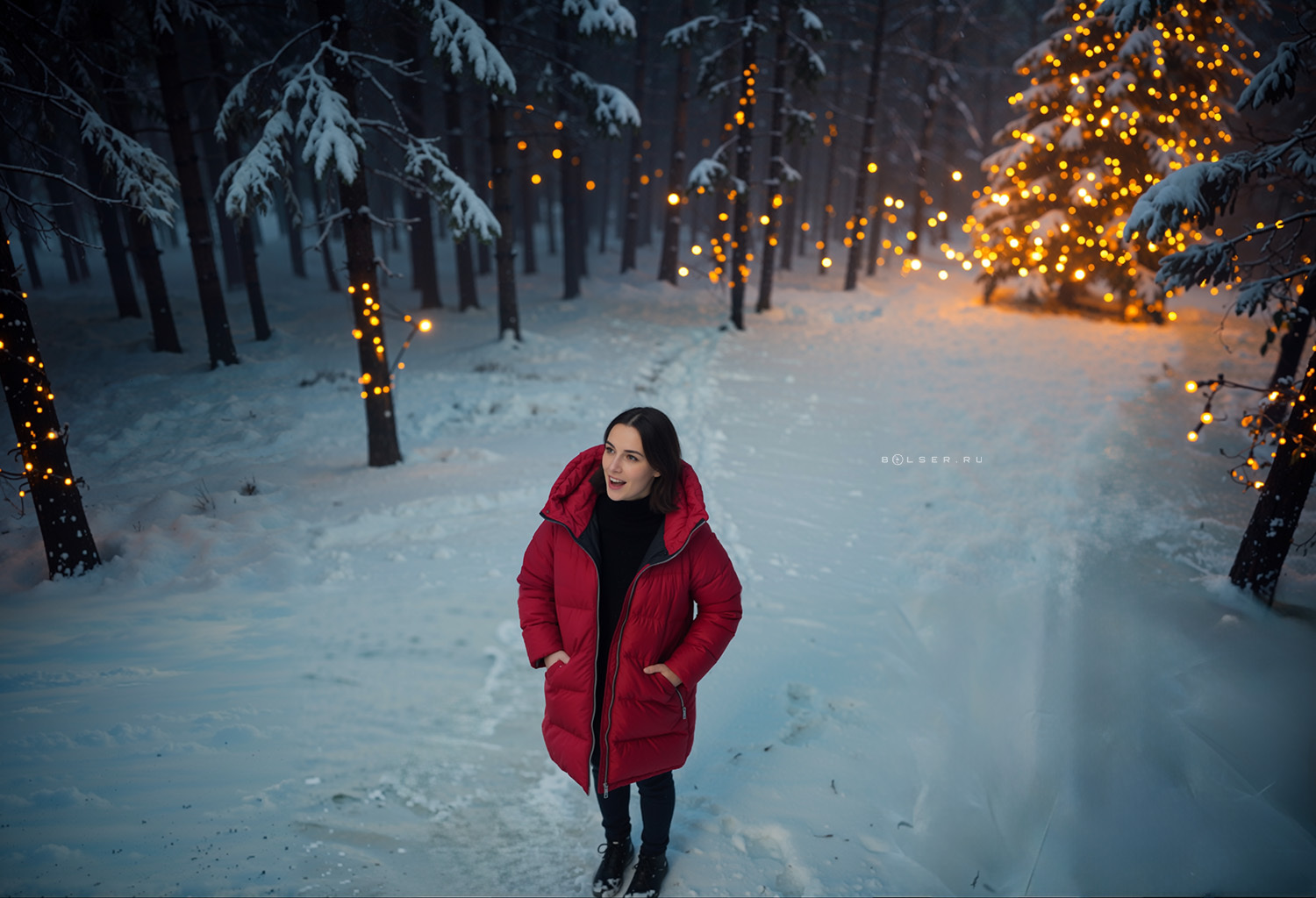 По прежнему есть некоторые проблемы с консистенцией. Но в целом, думаю интересно получилась реализация идеи украшенной ели в лесу. С художественной точки зрения, интересного здесь мало. Но по сути это работа над технической частью - сложные ракурсы, детализацией и реалистичностью. В итоге, получилась нейро фотопрогулка в новогоднем лесу с людьми, которых не существует. Генерация полностью локальная, без применения сервисов. Конечные правки в Фотошопе. Одежда - с Вилдбериса / bolser.ru