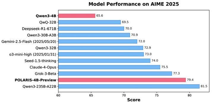 Команда HKU NLP представила POLARIS — рецепт, как вырастить 4B‑модель, которая решает задачи почти на уровне Qwen‑235B. В AIME‑бенчмарках — 81.2% на AIME24, 79.4% на AIME25, при том что модель умещается в память телефона.