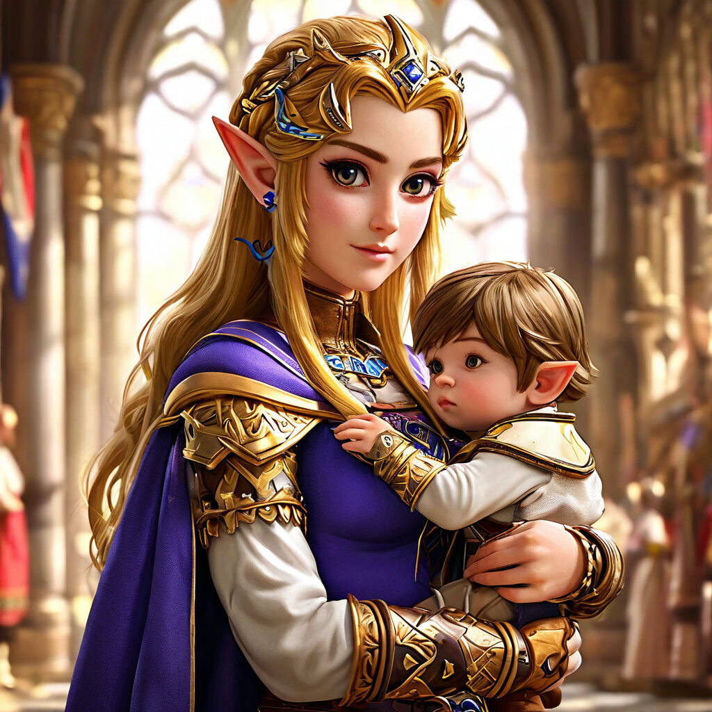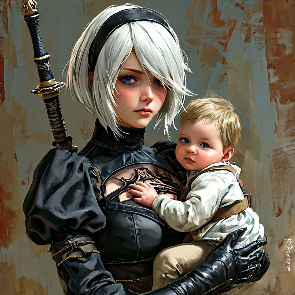 Генерация Элой-мамы получилась настолько милашной, что дальше было трудно остановиться. Малышами обзавелись 2В, Принцесса Пич, Тифа, Зельда, Байонетта... Если кого еще сделаю — докину картинки в комменты. Вы тоже можете предлагать варианты, буду пробовать!