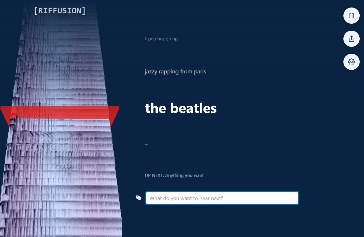 А вот созданная на базе Stable Diffusion нейросеть Riffusion генерирует музыку на основе текстового описания. Вводите название стиля, группы или исполнителя, и получаете аудиопоток, весьма отдаленно напоминающий то, что вы попросили. Например, по запросу “the beatles” Riffusion родила довольно заунывный трек, голос в котором действительно чем-то отдаленно напоминает вокал Пола Маккартни. С сильного бодуна, может, и сойдет за какой-нибудь оуттейк-бутлег эпохи ранних Wings.