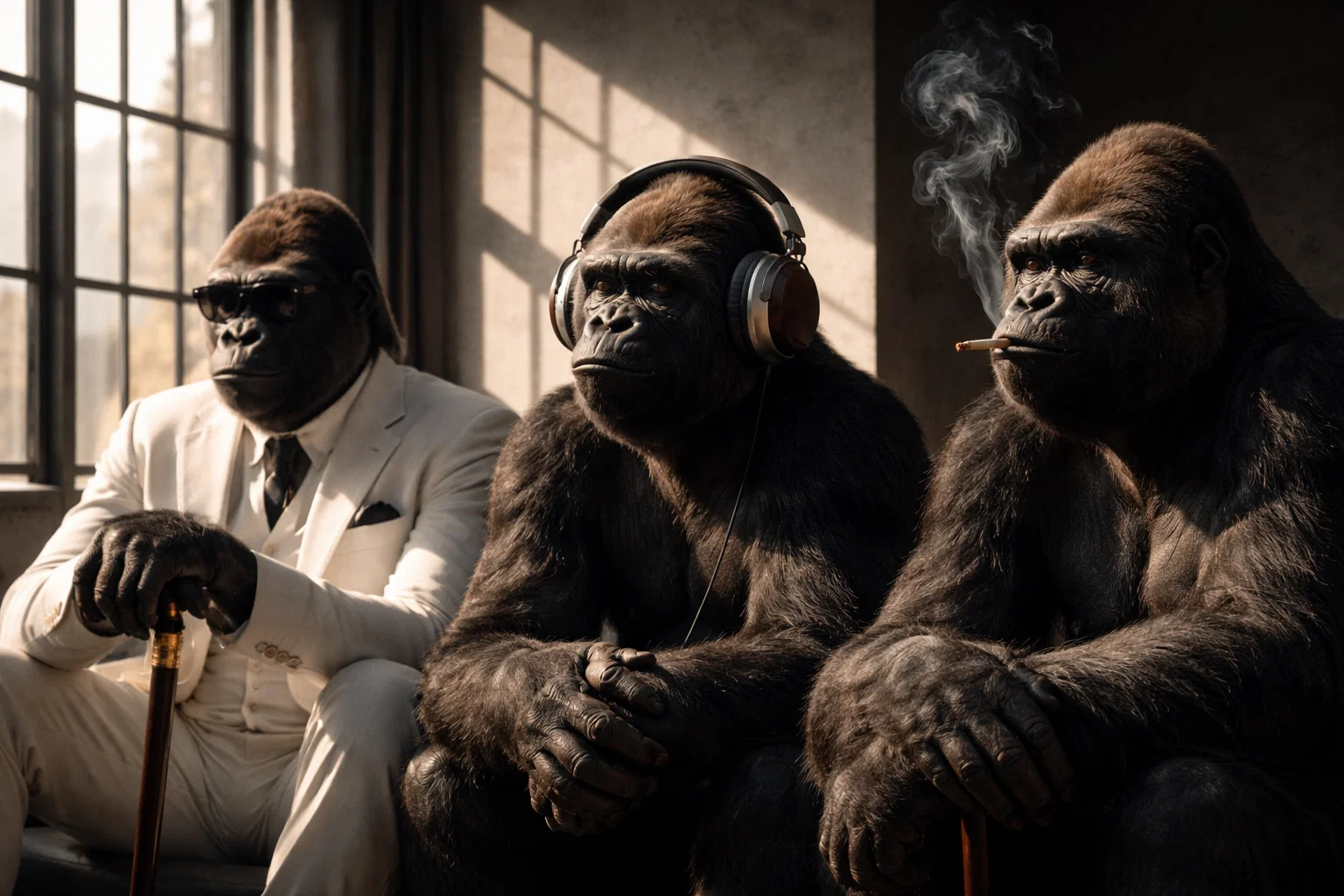 Только не понятно, горилла-молчун ест одуванчик или пытается его сдуть?