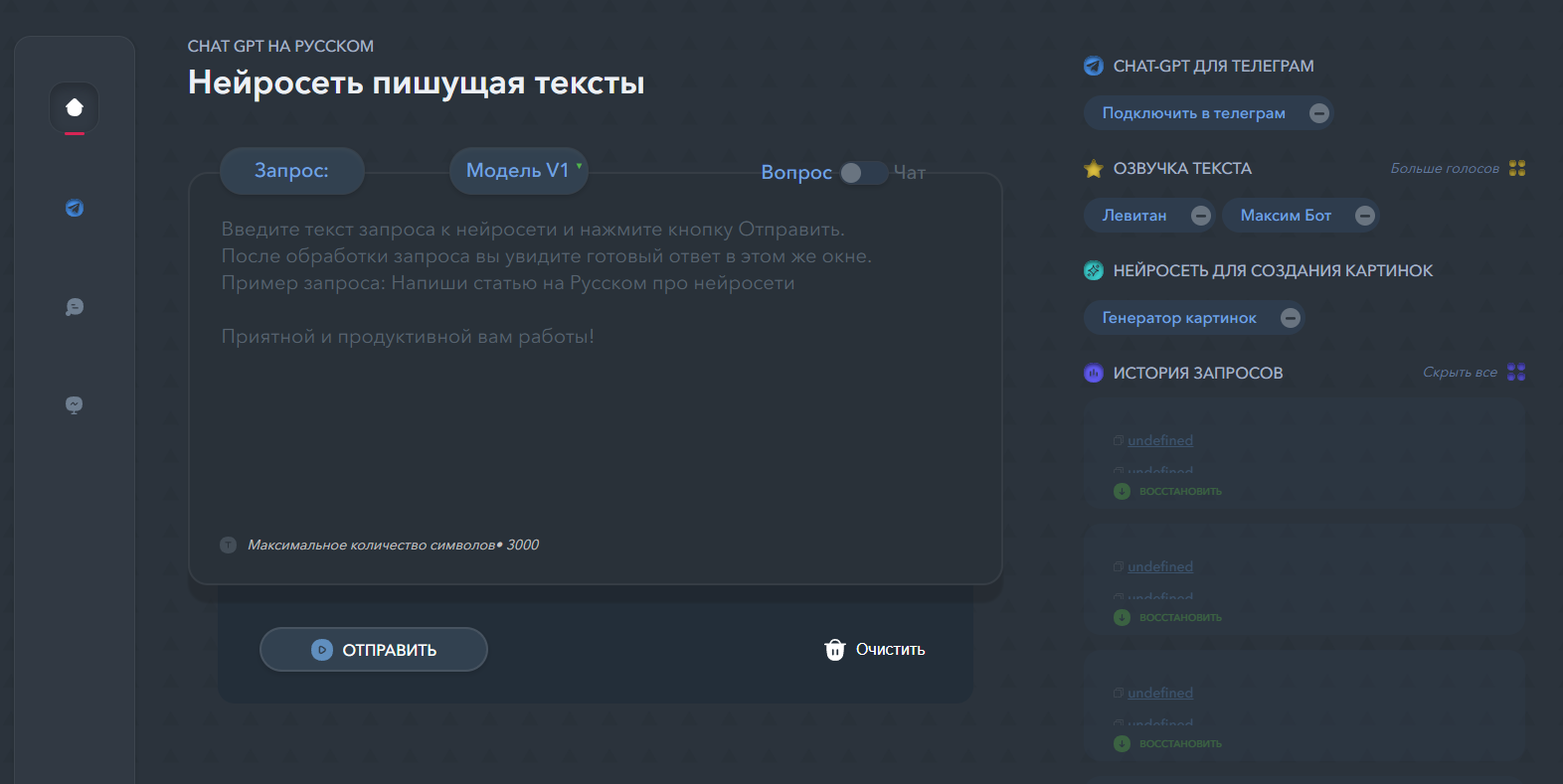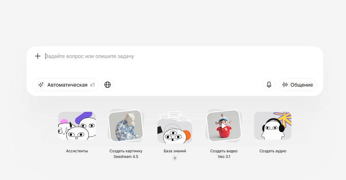 Российский сервис с доступом к ChatGPT-5, Claude, Midjourney и Stable Diffusion. Платформа генерирует тексты, коды и изображения. Чат-бот прекрасно справляется с обработкой и анализом загруженных документов. При загрузке файла система анализирует текст, делает краткие выводы и отвечает на вопросы. Подходит для автоматизации задач и экономии времени при работе с большими объемами.