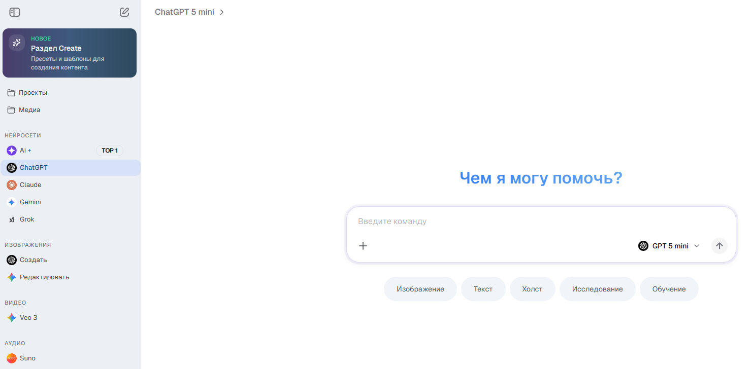 доступ к нескольким нейросетям в одном сервисе;