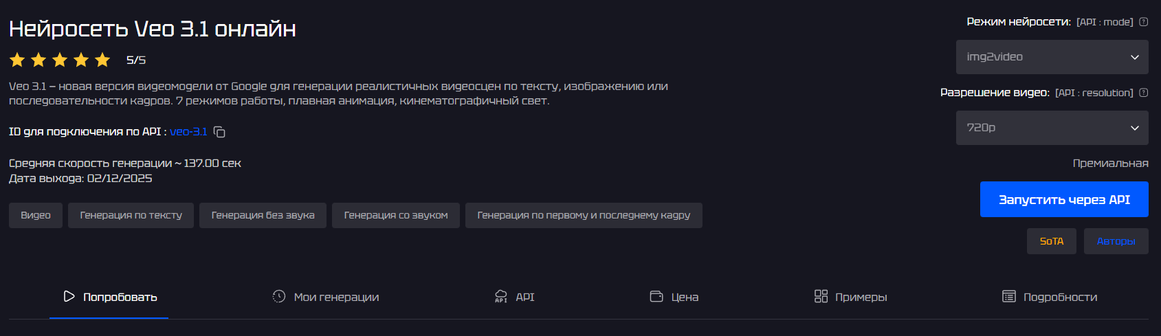 7 режимов в одной модели — удобно собирать склейку из перебивок, интерполяций и референсных сцен.