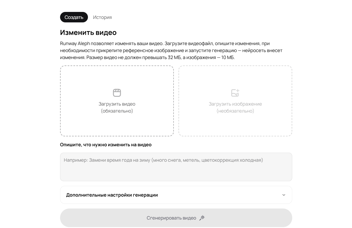 Можно генерировать и по тексту, и из картинки — удобно, если у вас есть референс кадра.