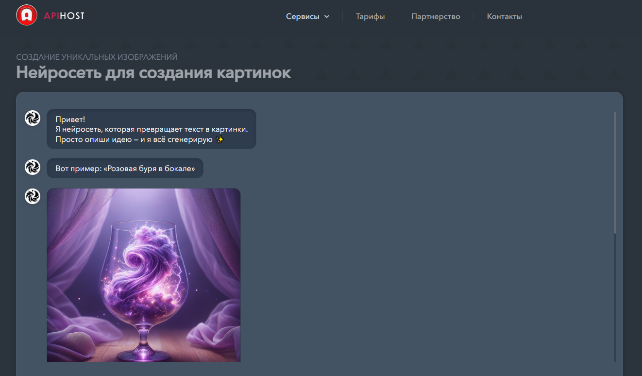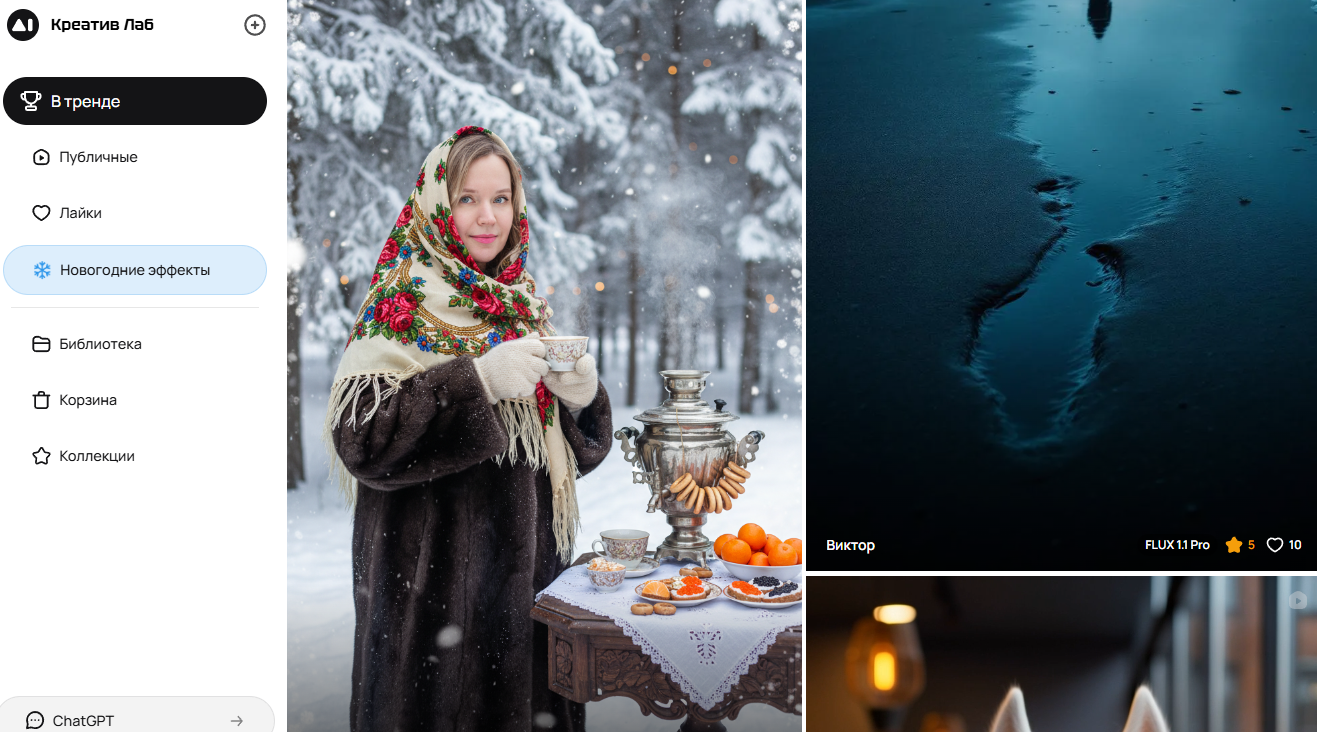 Сервис позволяет генерировать изображения по описаниям прямо в браузере, без необходимости в сложных настройках. Все работает на русском языке, что избавляет от языковых барьеров. Используя мощные модели вроде Midjourney, Stable Diffusion и DALL‑E, можно создать визуалы разного уровня — от простых иллюстраций до креативных сцен для коллажей. Я часто использовал его для быстрого получения визуальных элементов к проектам, а потом дорисовывал детали или подбирал стиль под общую тему. Интерфейс может быть немного перегружен, но результаты всегда впечатляют.