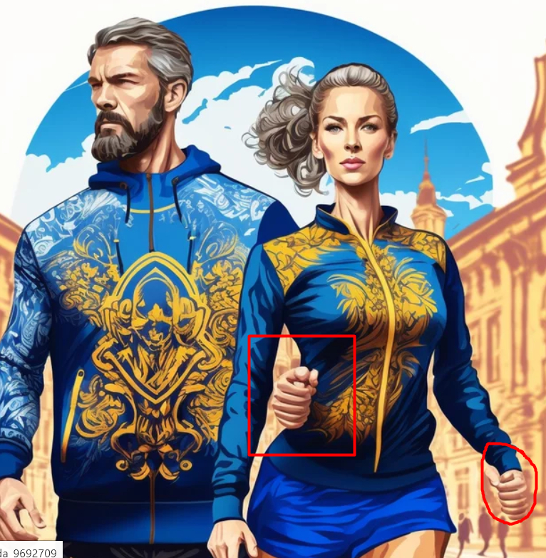 Первые образы вышли по запросу "костюмы для бега в стиле Хохлома и Гжель".На второй картинке у женщины не дуля, а просто рука бегущего рядом мужчины)