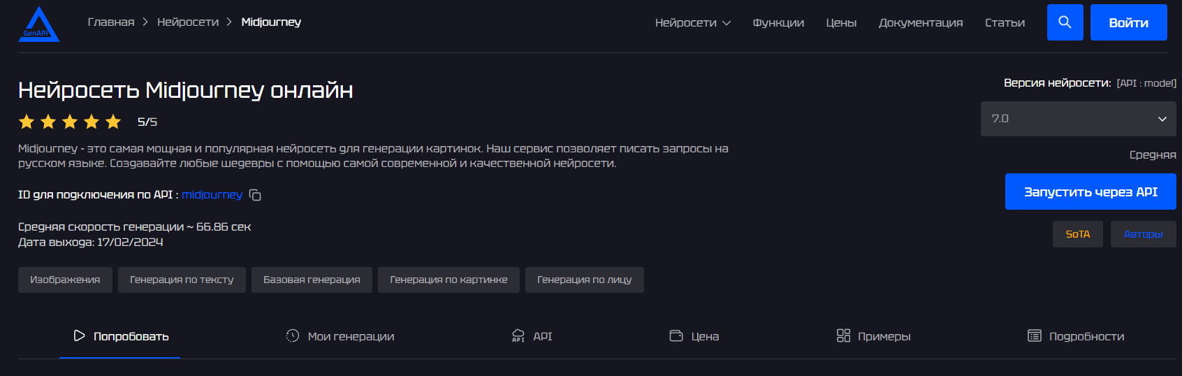 GenAPI — платформа с единым API-доступом к текстовым, визуальным и аудио-нейросетям.