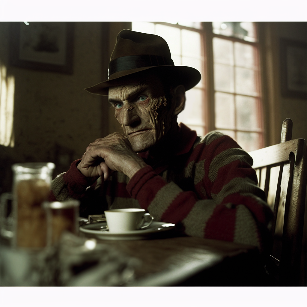 4 Zeraldy Нейросеть показала завтрак героев фильмов ужасов 2 года назад [моё] Арт Арты нейросетей Midjourney Искусственный интеллект Рисунок Цифровой рисунок Stable Diffusion Ужасы Длиннопост Ещё 0