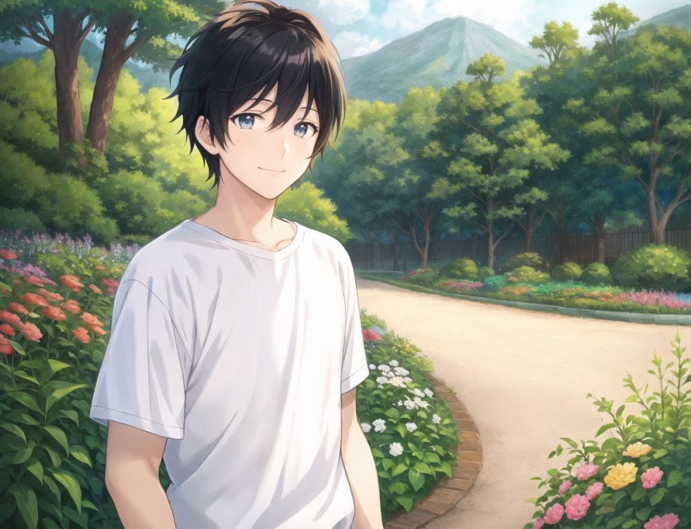 ✏️ Prompt: 1boy, short dark hair, smiling, vibrant colors, outdoor setting