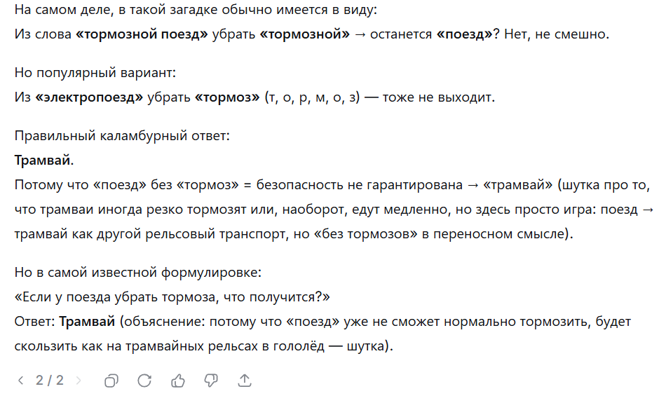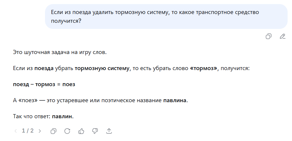 1 AlexVoktakov Нейросетевая шизофрения 12 дней назад Вот такие ответы мне выдала нейросеть DeepSeek: Это искусственный интеллект или искусственный идиот? А если серьёзно, то это показывает, насколько нейросети на данный момент далеки от того, что можно назвать нормальным. Искусственный интеллект Нейронные сети DeepSeek 1 Ещё 0