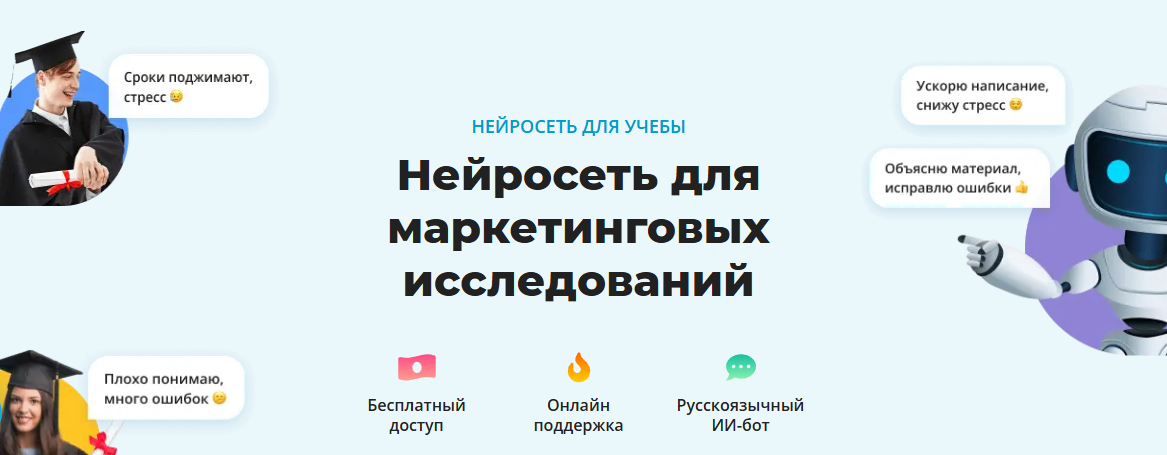 Нейросеть, которая помогает собирать и анализировать маркетинговую информацию, формулировать цели кампаний и генерировать идеи для продвижения. Сервис подходит тем, кто хочет быстро получить аналитику по нише, понять свою аудиторию и оценить тренды без глубоких знаний в маркетинге. ИИ‑бот может создавать варианты текстов для постов, email‑рассылок и рекламных сообщений на основе анализа целевой аудитории и рынка, что ускоряет подготовку маркетинговых материалов. Также он объясняет сложные метрики простыми словами, помогая разобраться в эффективности кампаний даже новичкам.