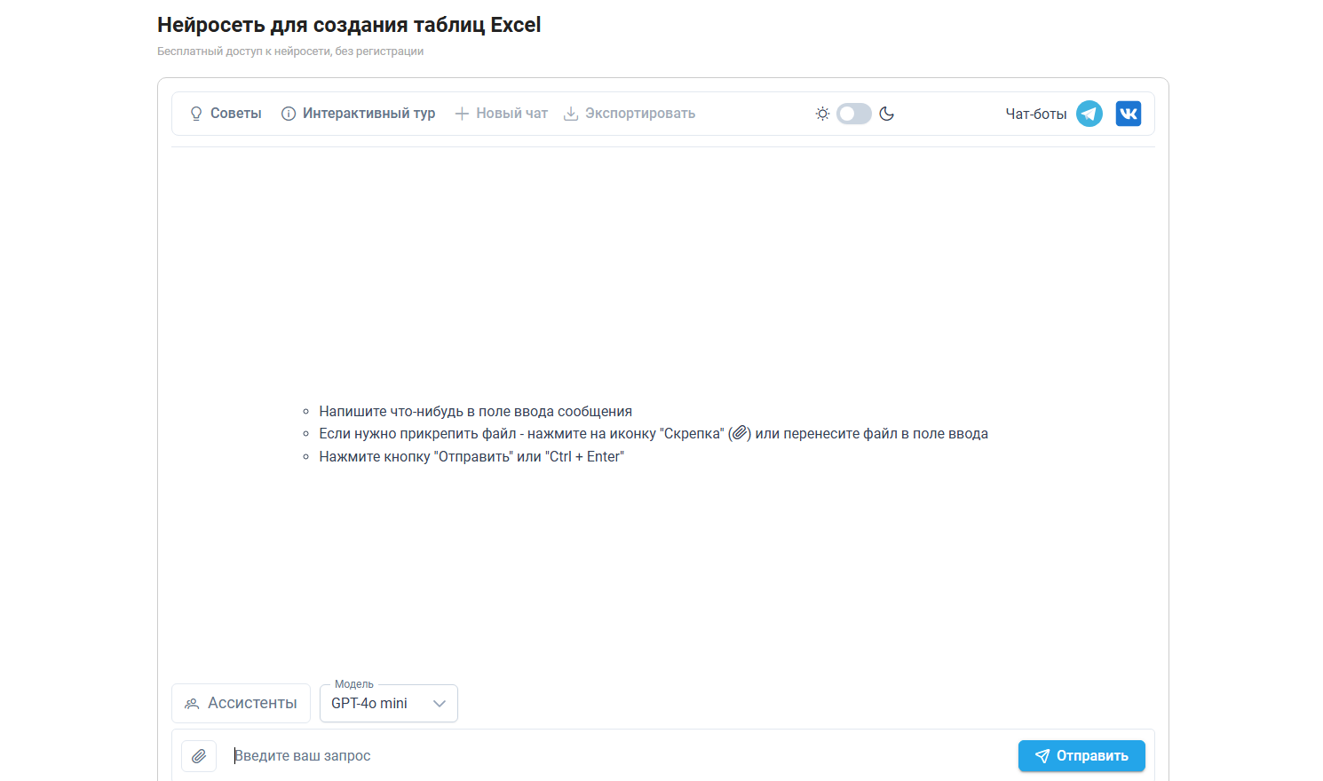 Есть нейросеть для таблиц бесплатно без регистрации, плюс бонусные запросы в личном кабинете для тестирования возможностей.