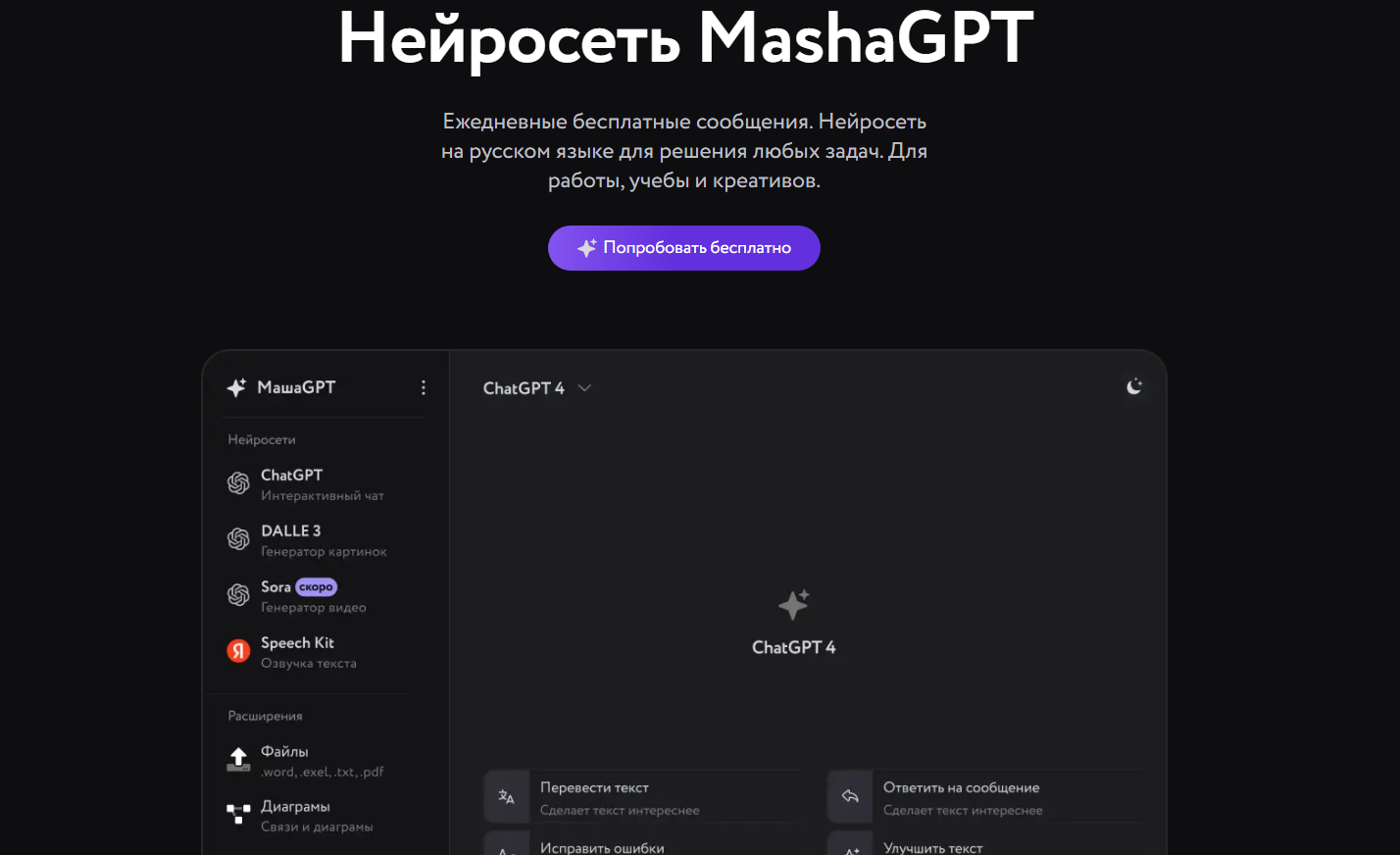 MashaGPT — агрегатор популярных моделей с поддержкой загрузки Excel, анализом табличных данных и созданием готовых .xlsx прямо из чата.
