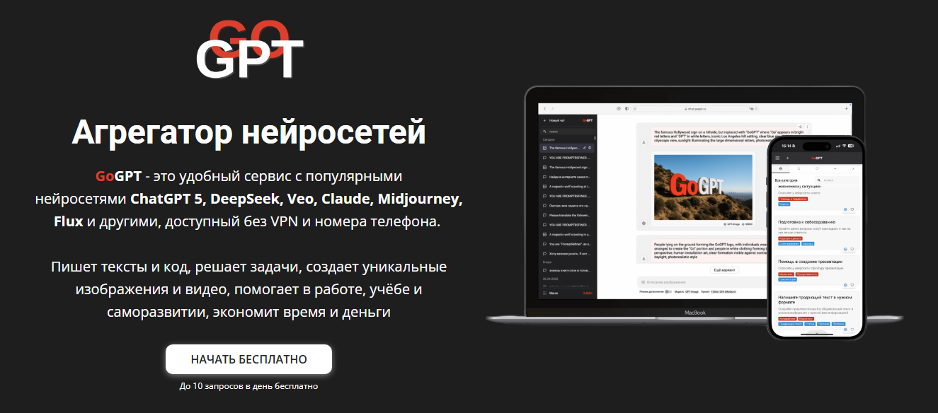 GoGPT — российский агрегатор, который решает задачи, код и аналитику.