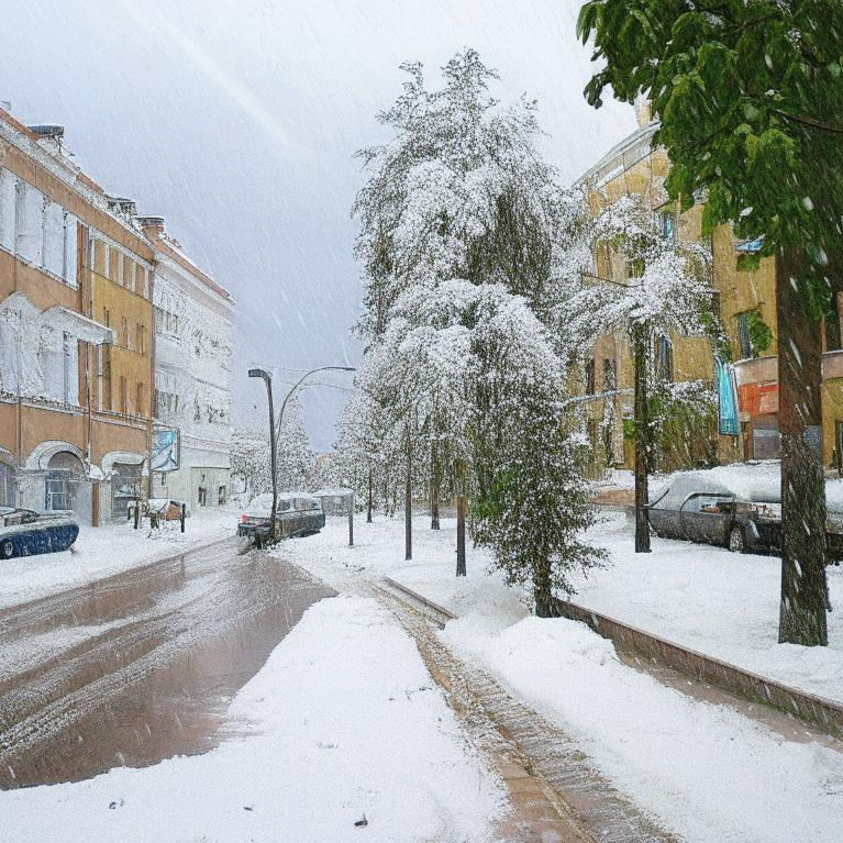 Минск, 21 июня 2023 г. - Новостное агентство "НейросетьКо" сообщает о нелепом и абсурдном происшествии, которое произошло сегодня в столице Беларуси из-за аномальной жары. Местные жители утверждают, что в Минске на радость детям и ужас экологов начал выпадать снег.