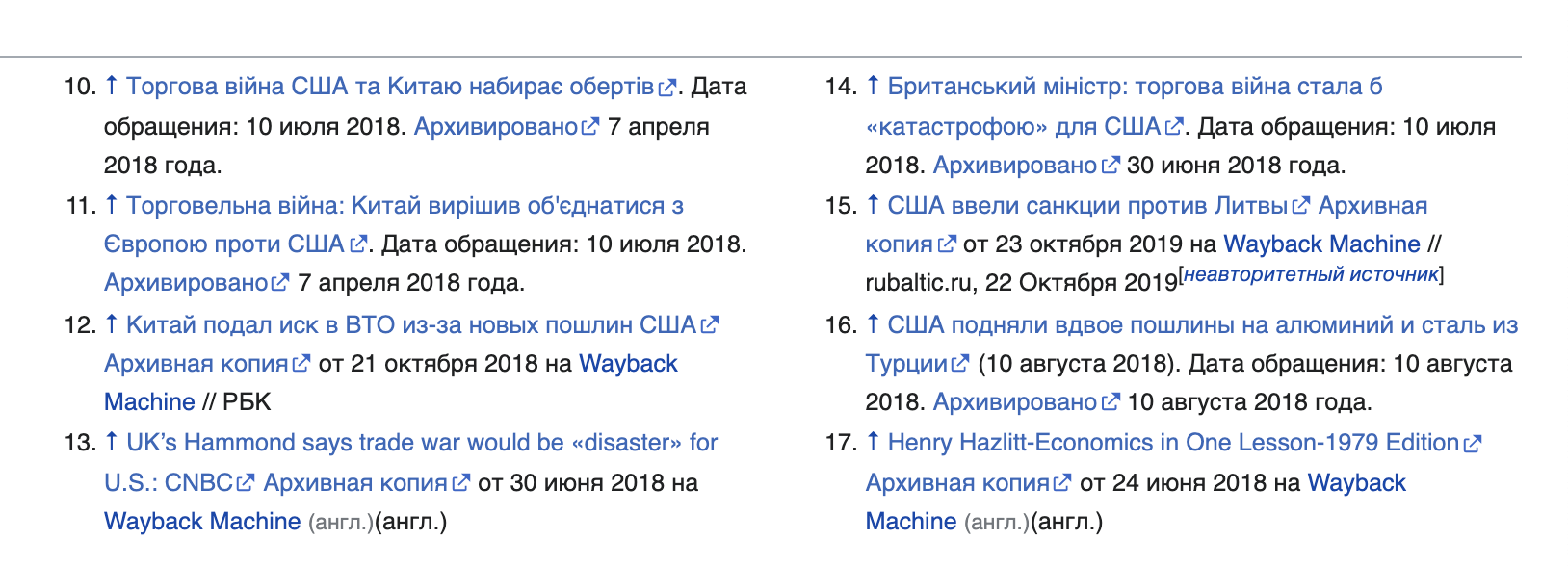 У меня недавно вышла статья о торговых войнах на Пикабу, и вот какую прелесть я нашёл в википедии. Оказывается, там есть целая статья, вроде нейтральная и вполне адекватная. Любой, читающий её не заподозрит неладное.