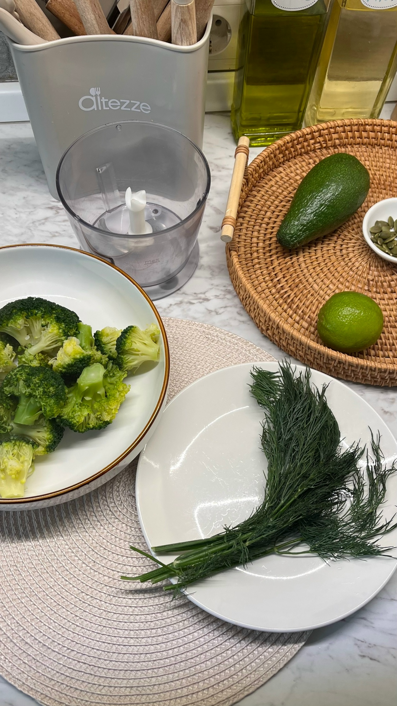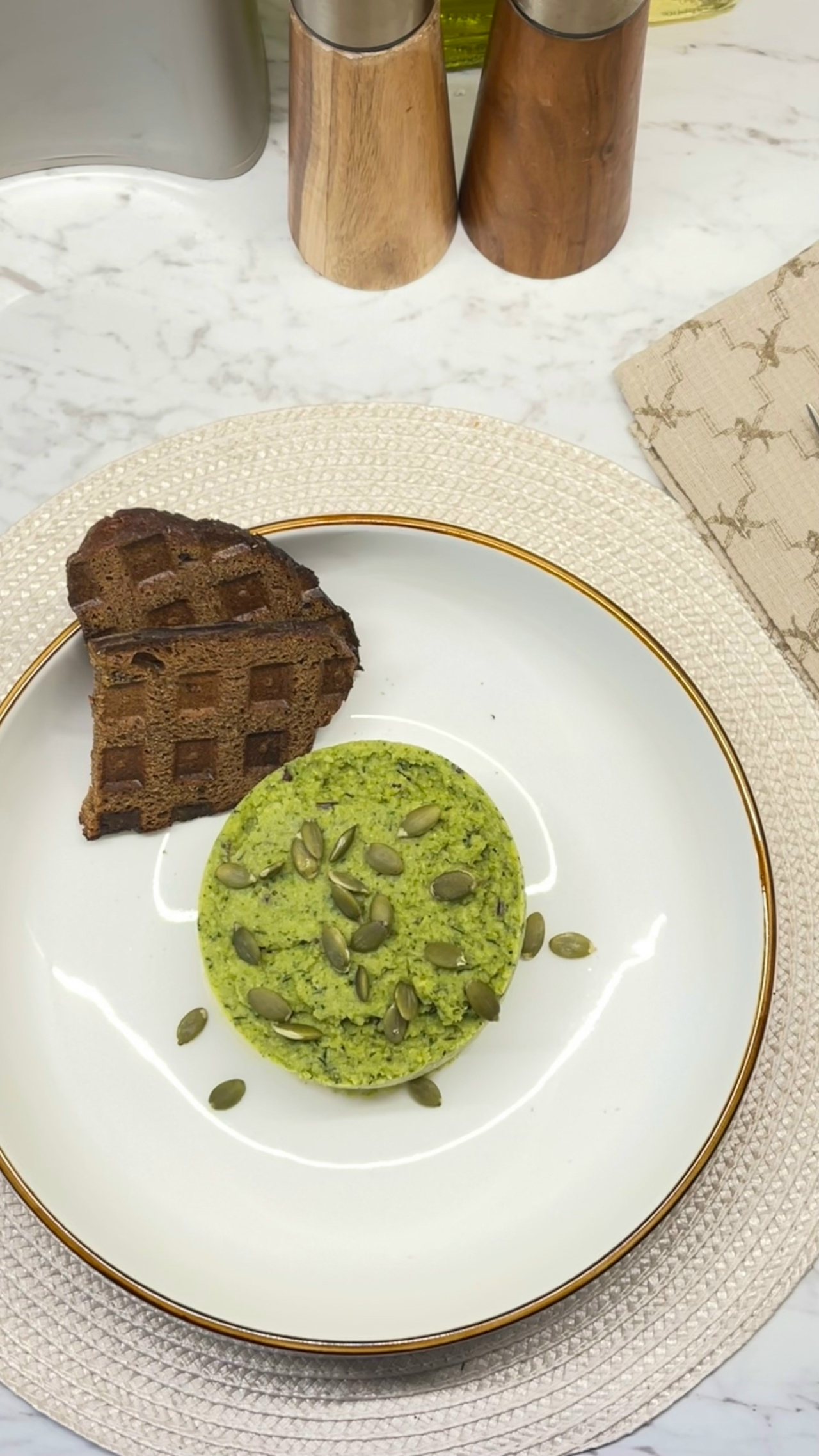 - Хрустящие тыквенные семечки (для украшения и текстуры).Процесс приготовления:В чашу блендера отправьте отваренную брокколи и мякоть авокадо.Добавьте оливковое масло, соль и несколько капель лимонного (или лаймового) сока.Взбейте все ингредиенты до получения гладкой, кремовой текстуры.Переложите паштет в красивую миску и украсьте тыквенными семечками.Приятного аппетита и кулинарных успехов !