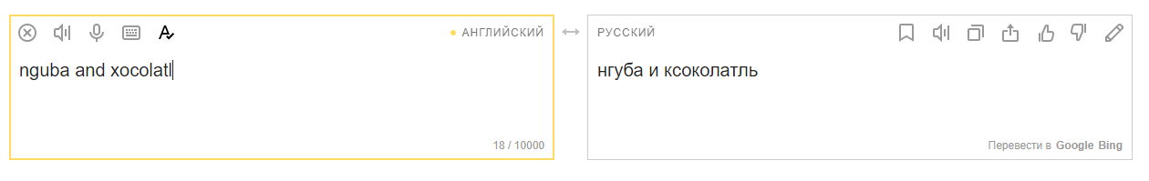 raffa1989 7 лет назад Нгуба и Ксоколатль Попались мне в тексте на английском незнакомые доселе слова. Яндекс очень помог с переводом [моё] Английский язык Яндекс Переводчик