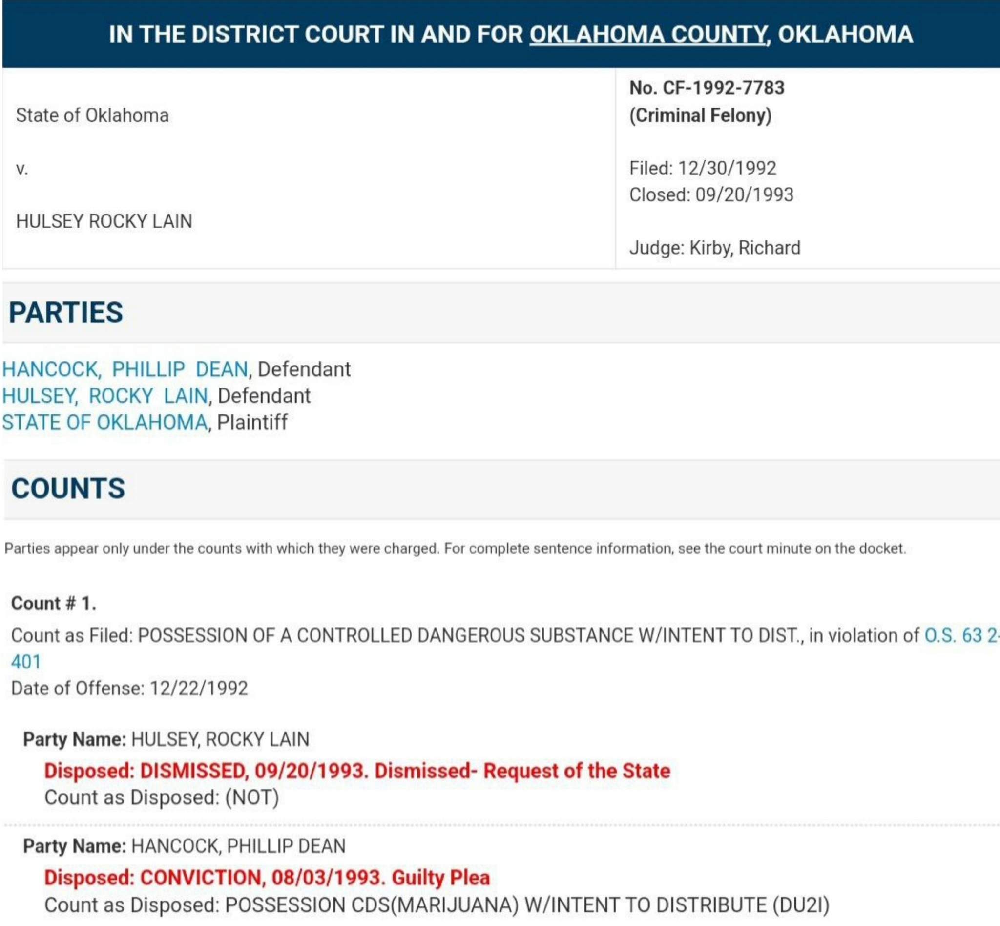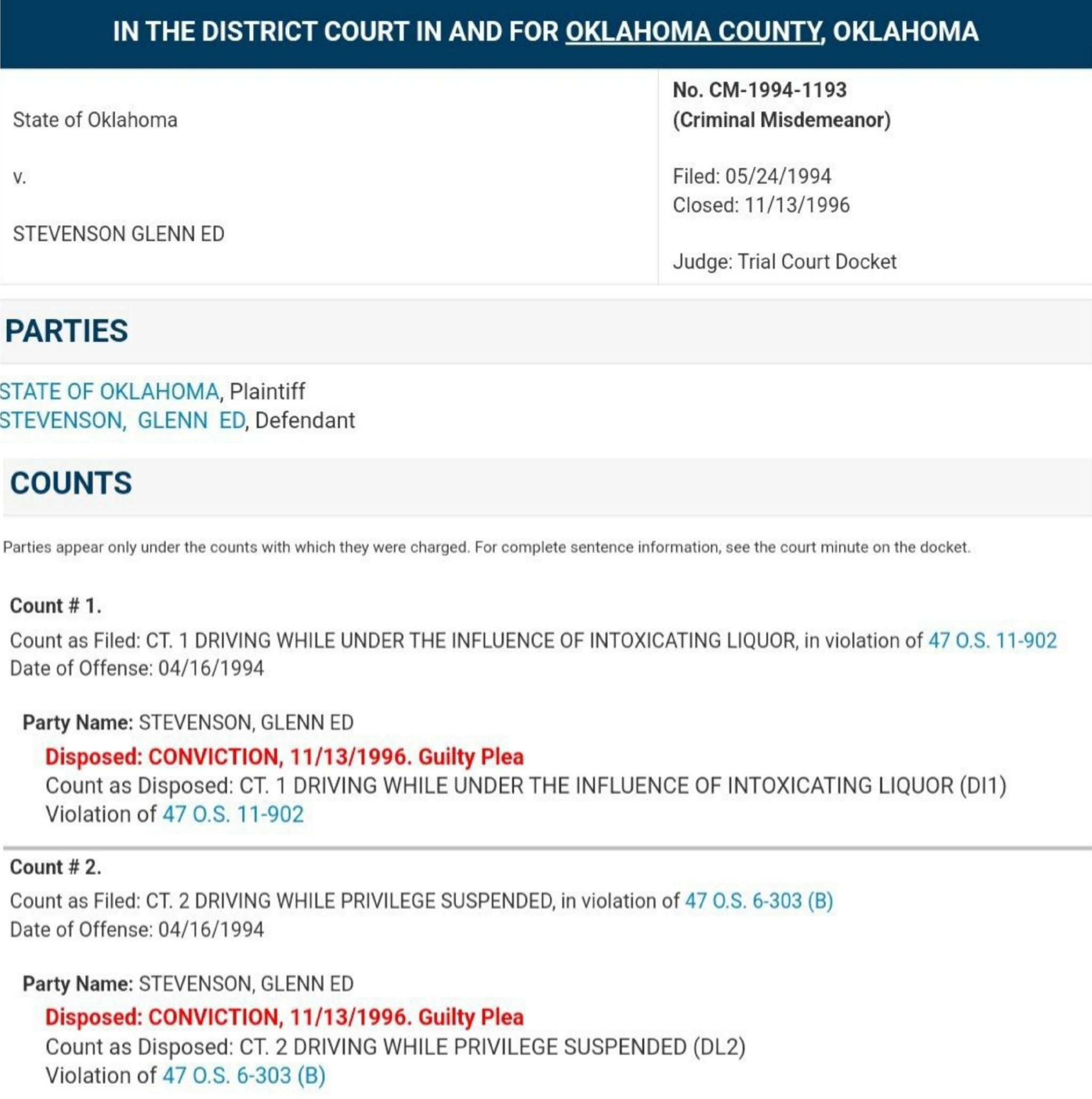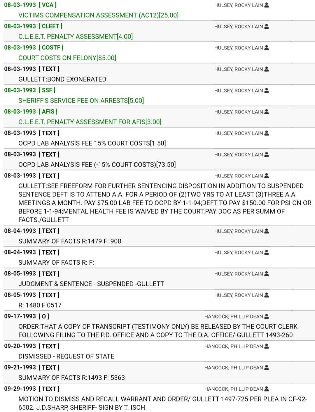 Онлайн-досье штата Оклахома на Уоррена, но его приговоры почему-то не были заполнены - есть только имя, дата рождения, физическое описание и дата ввода в тюрьму (июнь 1974):