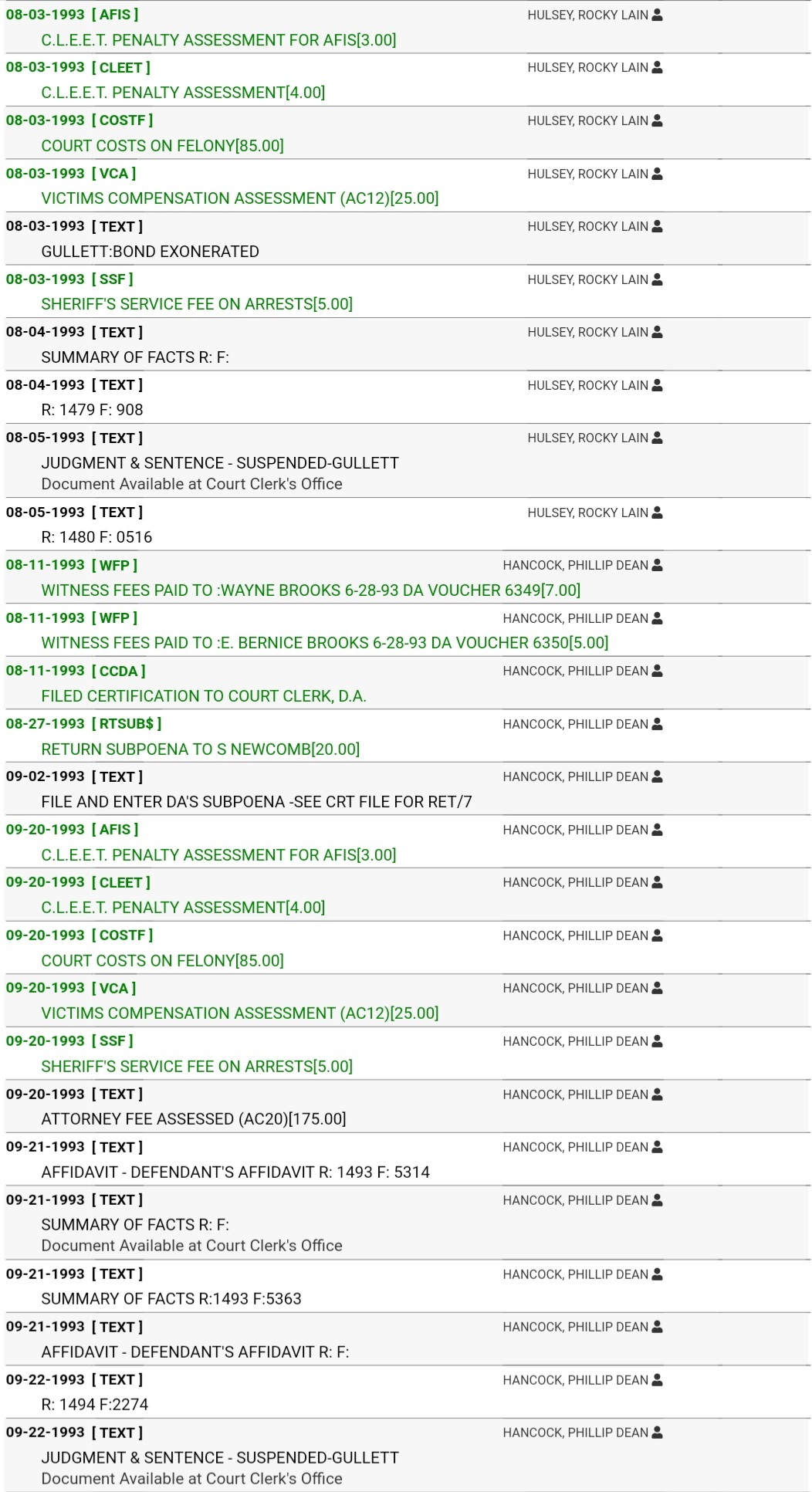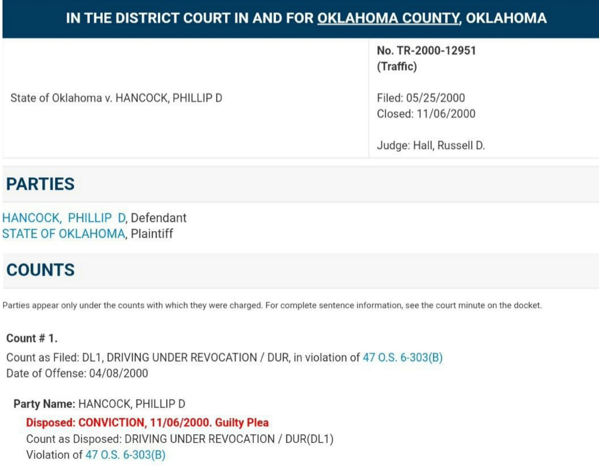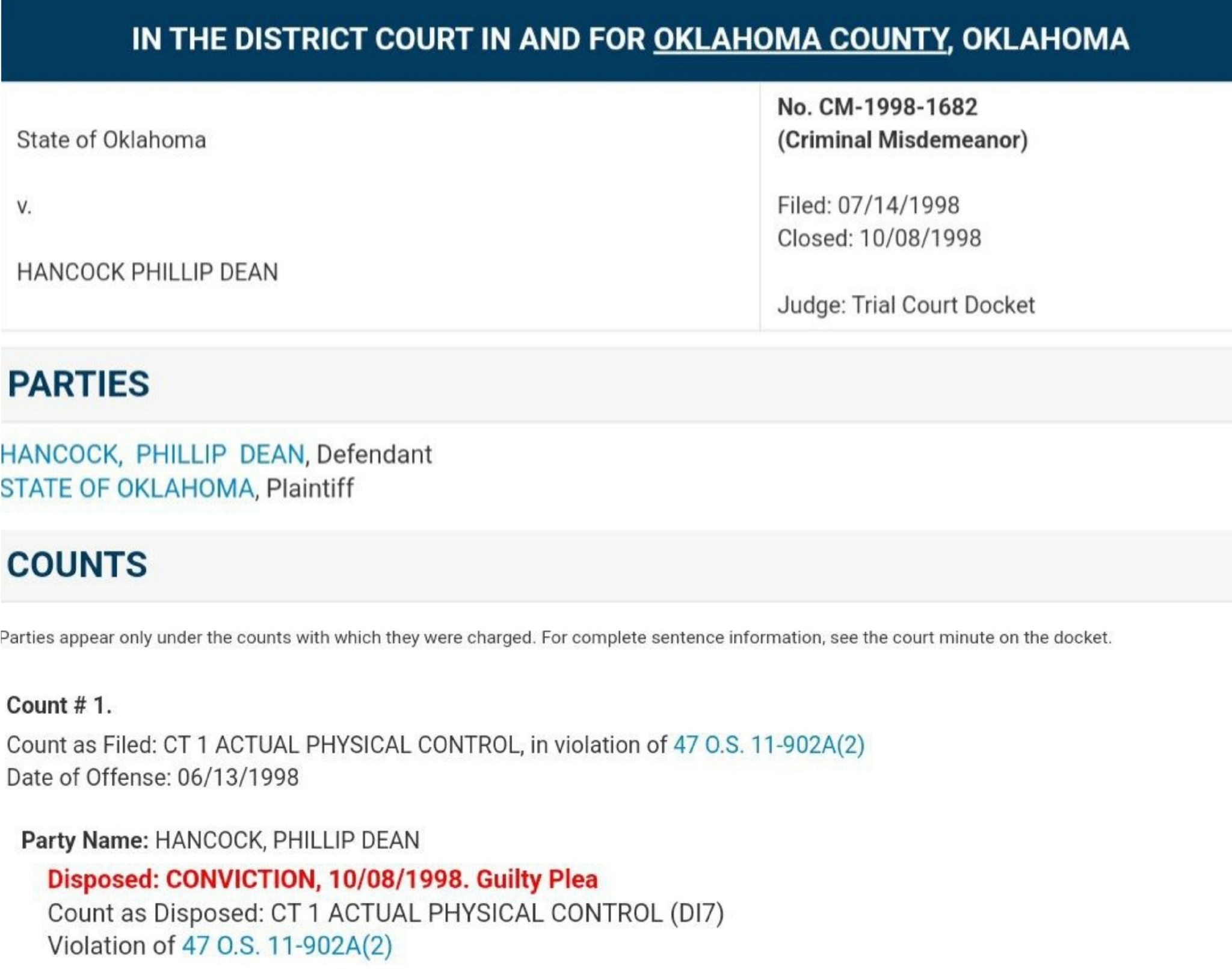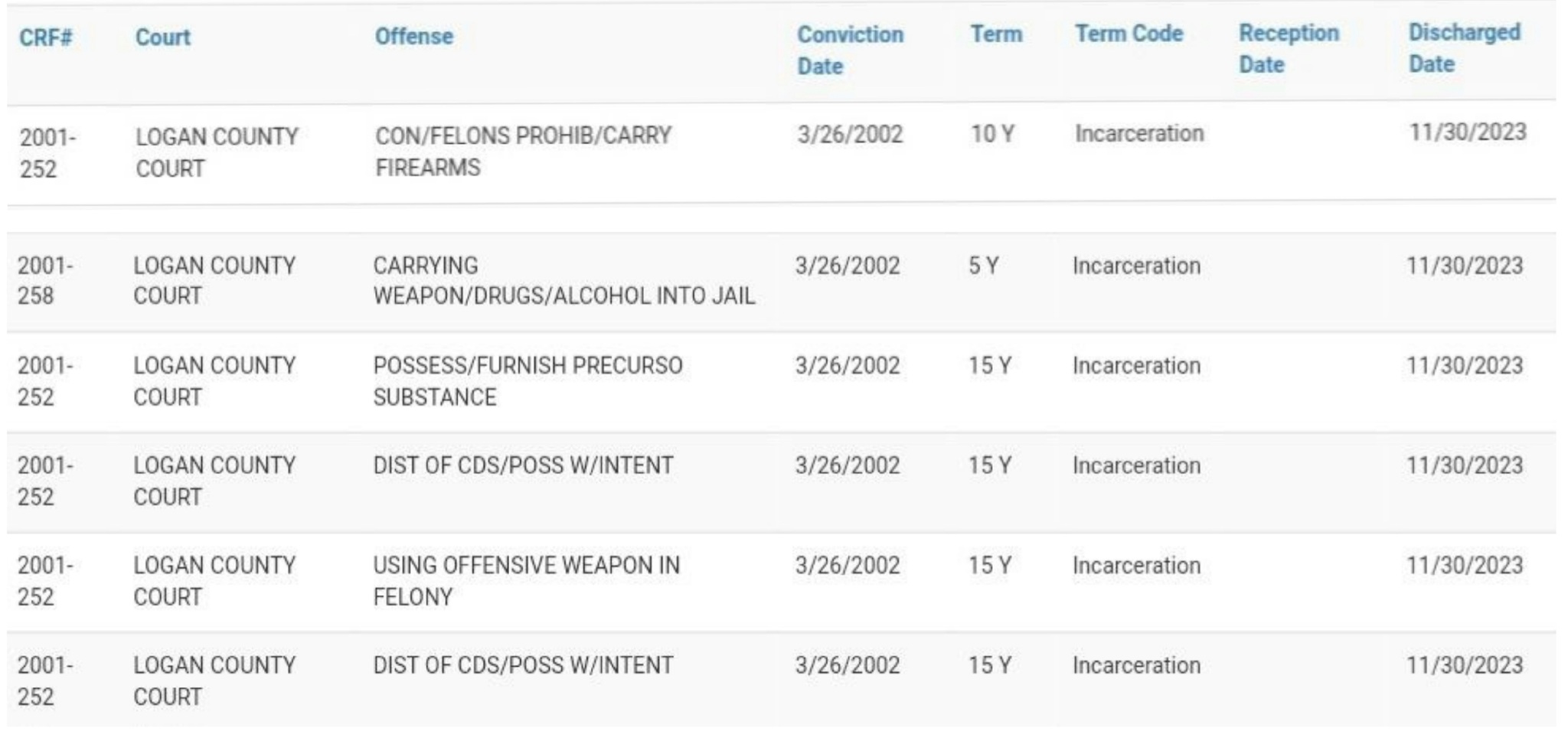 Онлайн-досье штата Оклахома на Уоррена, но его приговоры почему-то не были заполнены - есть только имя, дата рождения, физическое описание и дата ввода в тюрьму (июнь 1974):