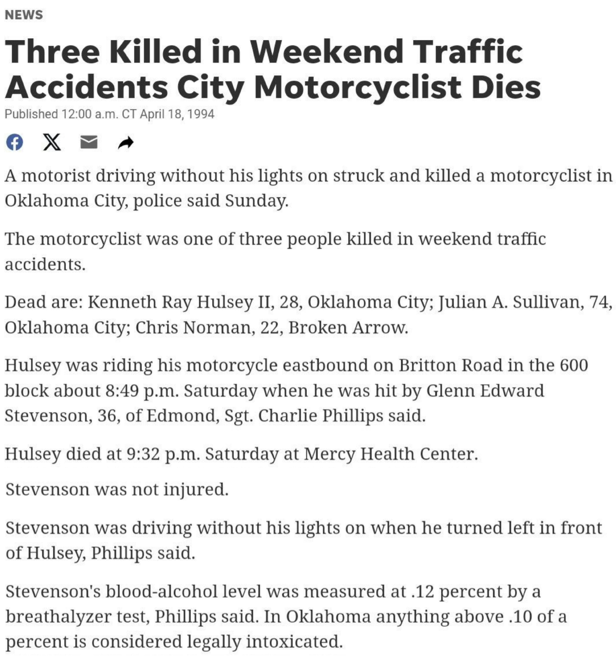 Вторым за убийство Чарльза Уоррена должны были судить Халси где-то после суда над Хэнкоком, но из-за того, что его судили как несовершеннолетнего, то подробности дела были скрыты от общественности и потому неизвестно был ли он осуждён (и если да, то каков был приговор) или же оправдан. Более о нём нет других упоминаний в документах или новостях помимо того, что 16 апреля 1994 года его сбил насмерть в городе Оклахома пьяный водитель, Глен Эдвард Стивенс, 36 лет, который сам не пострадал и в ноябре 1996 года заключил сделку с прокуратурой, сразу без суда присяжных признав себя виновным по двум меньшим обвинениям - пьяное вождение и вождение без прав. В обмен он был приговорён к неназванному сроку (видимо, условному), а также выплате 400 долларов для компенсации семье убитого и штрафу в 640 долларов для покрытия судебных расходов: