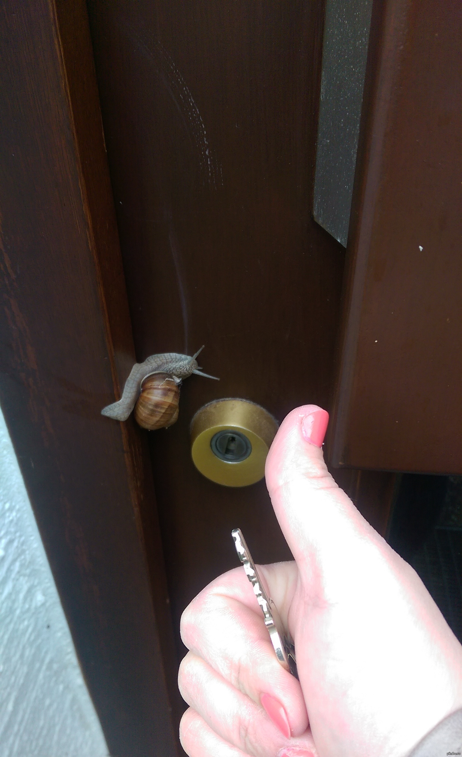 2 ValiantEvilly Ничего, я подожду 10 лет назад Вот такая наглость расположилась на входной двери на днях) [моё] Улитка Улица Дверь Германия