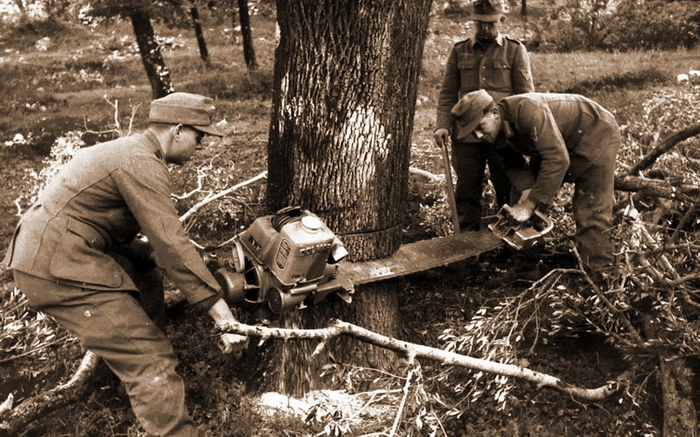Конечно, это не единственные модели бензопил, доступные германской армии во время Второй Мировой войны, но именно на них обычно ссылаются в тех случаях, когда хотят сравнить «у них и у нас». «У нас», как правило, показывают ручные пилы и делают выводы о несопоставимом техническом оснащении армий Германии и СССР. Но справедливы ли эти выводы?
