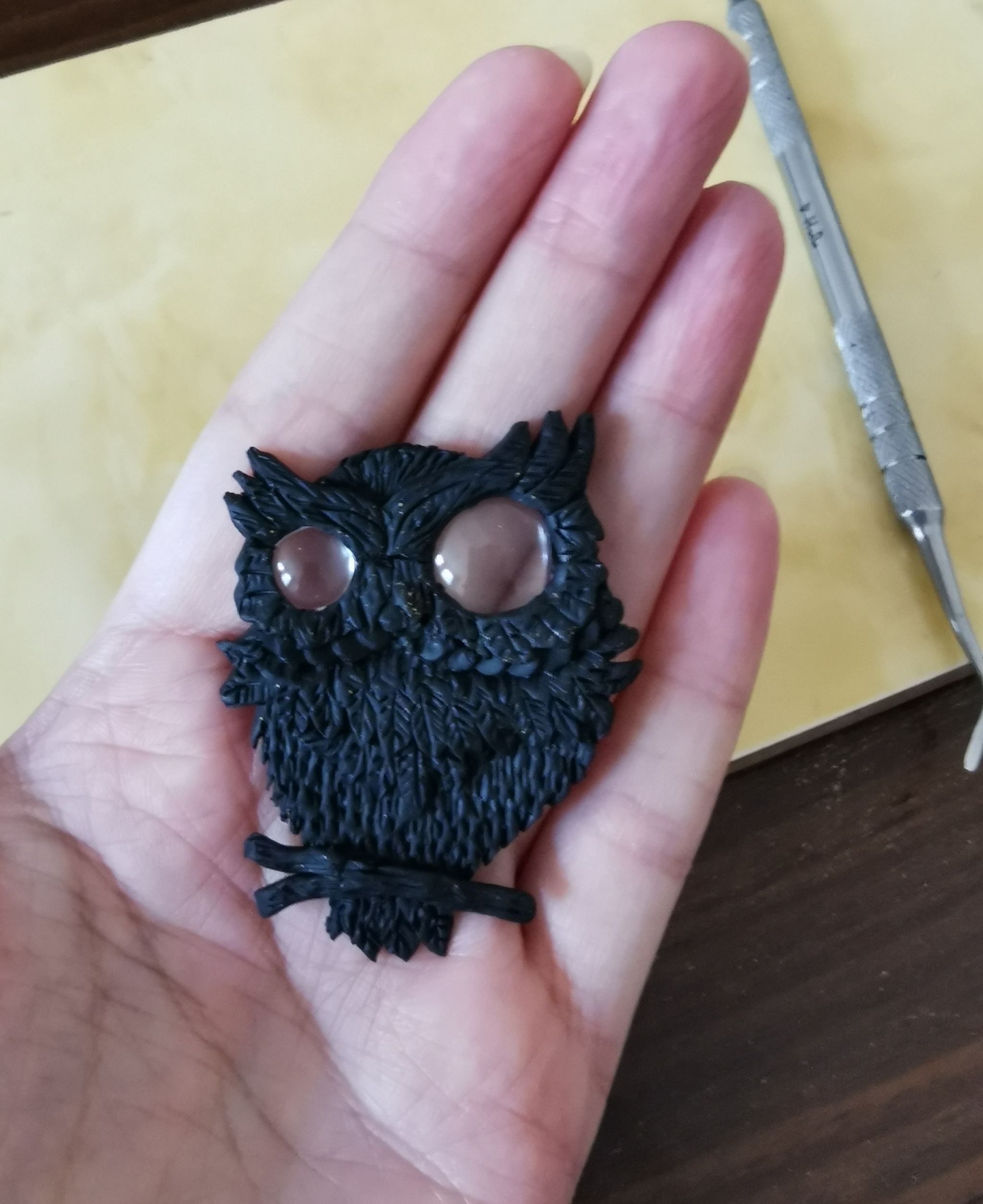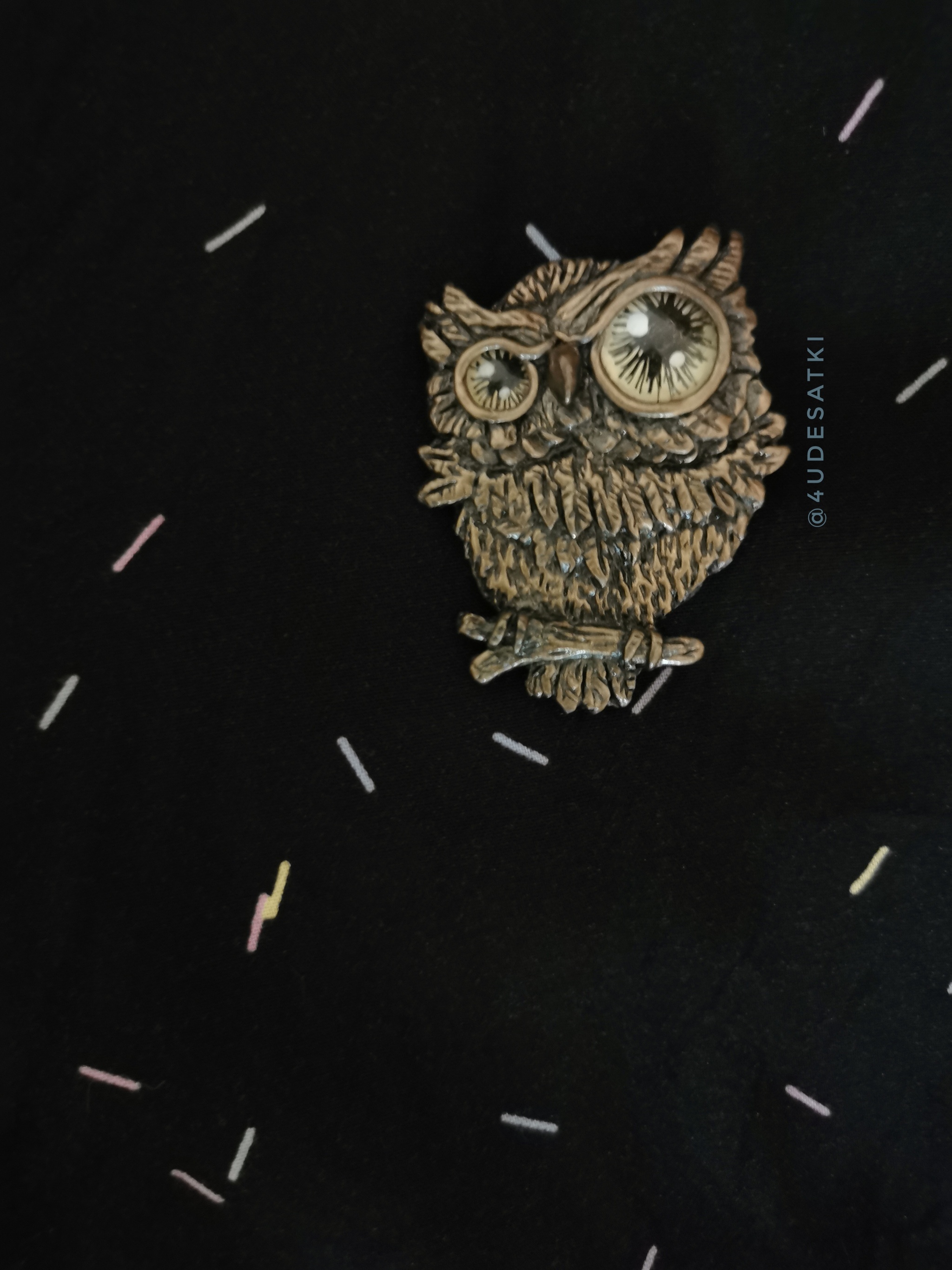 В итоге получилась сова, которая всегда с тобой 🤭. Брошка выглядит железякой, а весит при этом всего 8 грамм и совместима с футболками и блузками)