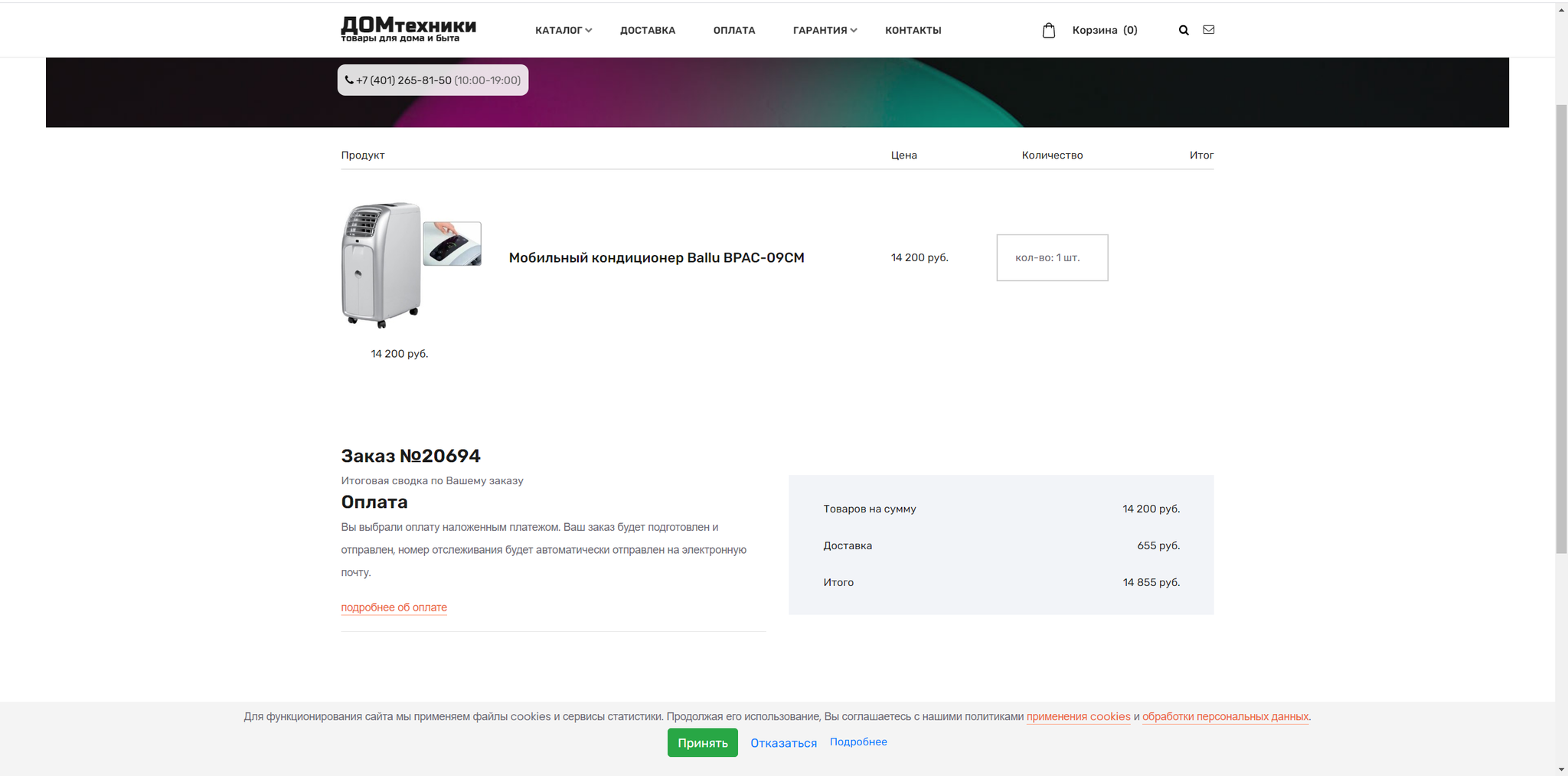 Сделал я заказ, и начал названивать по указанному номеру. Робот говорил, что все люди заняты и перезвоните позже. Примерно через час со мной связались по телефону, просили подтвердить заказ, и только сейчас я понял, что даже не уточнили место доставки. Ну да ладно. Пообещали отправить запрос на счёт в бухгалтерию. Мол оплатите счёт и завтра когда увидим ваш платеж, сразу же отправим товар на доставку, а там всего 1-2 дня и вы счастливый обладатель великолепного кондиционера. Счёт пришел буквально через минуту после звонка. Я такой быстрой работы бухгалтерии ещё не встречал.