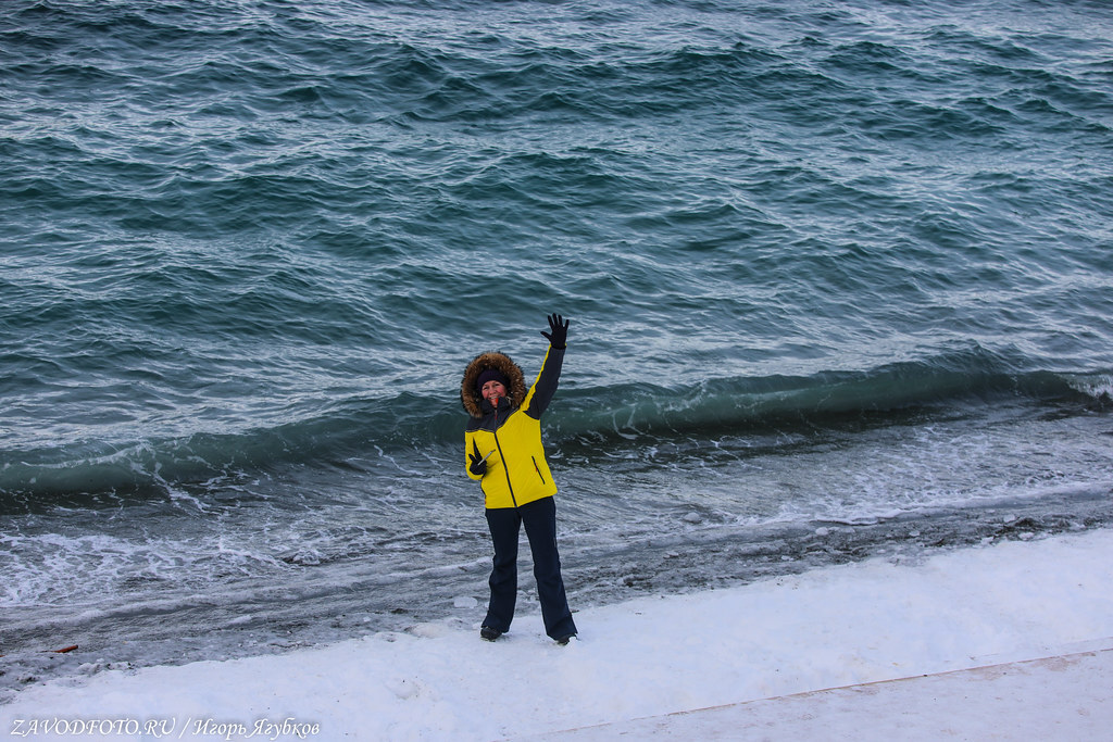 Спустившись вниз по лестнице можно оказаться на узкой полосе берега. Он тянется в обе стороны вдоль Никольской сопки. Можно просто сесть на скамейку, понаблюдать закат и солнечную дорожку от заходящего оранжевого солнца. Или сидеть с закрытыми глазами и слушать шум волн, которые накатывают на берег. Короче, место классное, всем рекомендуем.