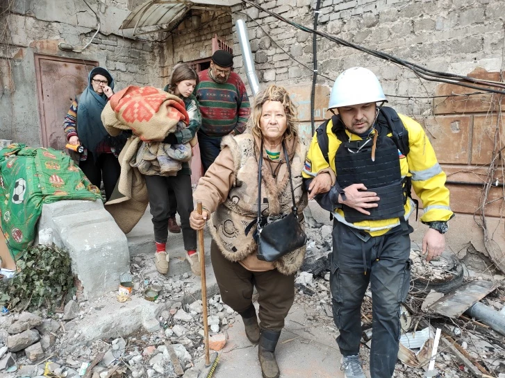 Эту женщину мы нашли в одном из подвалов. Место, где она жила, было очень опасным, под обстрелами. Она пряталась в подвале с трехлетним ребенком. Я предложил увезти ее отсюда в пункт временного размещения. Она очень хотела уехать, но боялась выйти и пройти несколько метров по двору до нашей машины. Плакала, ей было безумно страшно выйти. Так и осталась. Хотя мы не повели бы ее по опасной зоне — мы водили людей дворами. Но я не стал уговаривать, это было ее решение. Выходить из домов тогда было действительно опасно. Один раз на наших глазах было такое: бежим от одного дома к другому, разносим гуманитарку, возвращаемся назад — а там уже три погибших. Двое мертвые, третий умирает на глазах. Люди просто вышли на несколько минут из подвала.