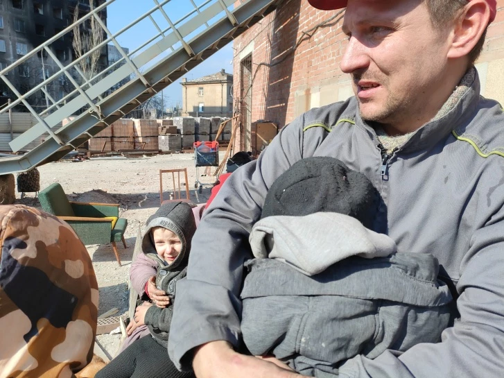 Саша не видел родителей двадцать дней. Их дом на улице Металлургов, где они жили все вместе с братом и сестрой, всего-то в полутора километрах от церкви, где он прятался. Но дойти до дома было невозможно: он находился в опасной зоне, этот участок был под обстрелами. Саша сказал нам адрес. Несколько дней мы пытались добраться до этого места, но там обстреливали. Я тогда решил: не уеду, пока не найдем его родителей. Наконец, согласовав маршрут с военными, мы пришли на улицу Металлургов. Но надо учесть, что никаких адресов сейчас в Мариуполе нет — в нашем понимании слова «адрес». Люди не живут в квартирах, только в подвалах. В том доме, который назвал Саша, подвала не было. Но случилось чудо: первый человек, который встретился нам на улице Металлургов, оказался Сашин отец Дмитрий. Вся семья, к счастью, выжила. Они прятались в подвале ближайшей гостиницы.