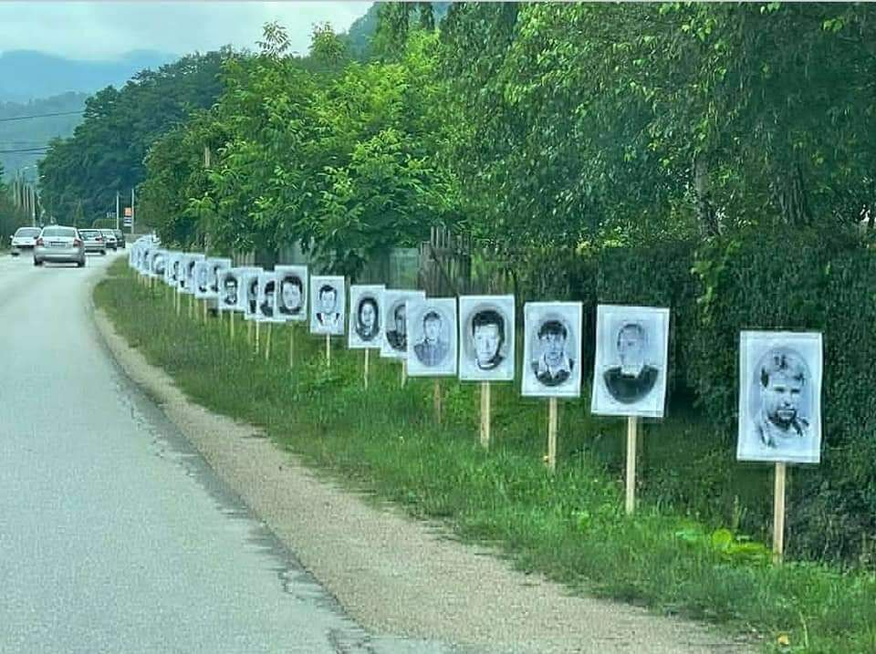 На фотографиях лица расстрелянных сербов, убитых бойцами 28-й дивизии, т.н. Армия Боснии и Герцеговины из Сребреницы под командованием Насера Орича.