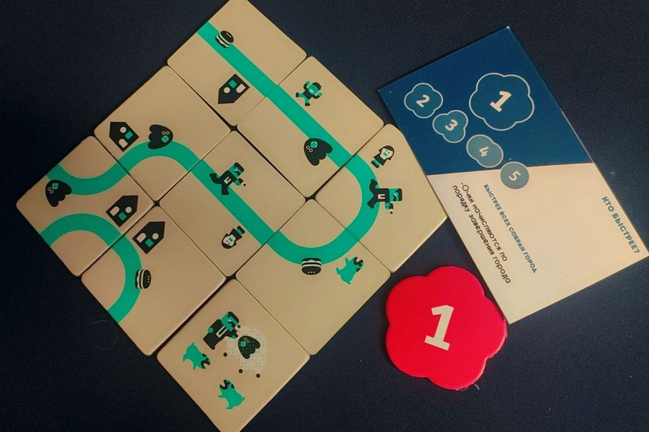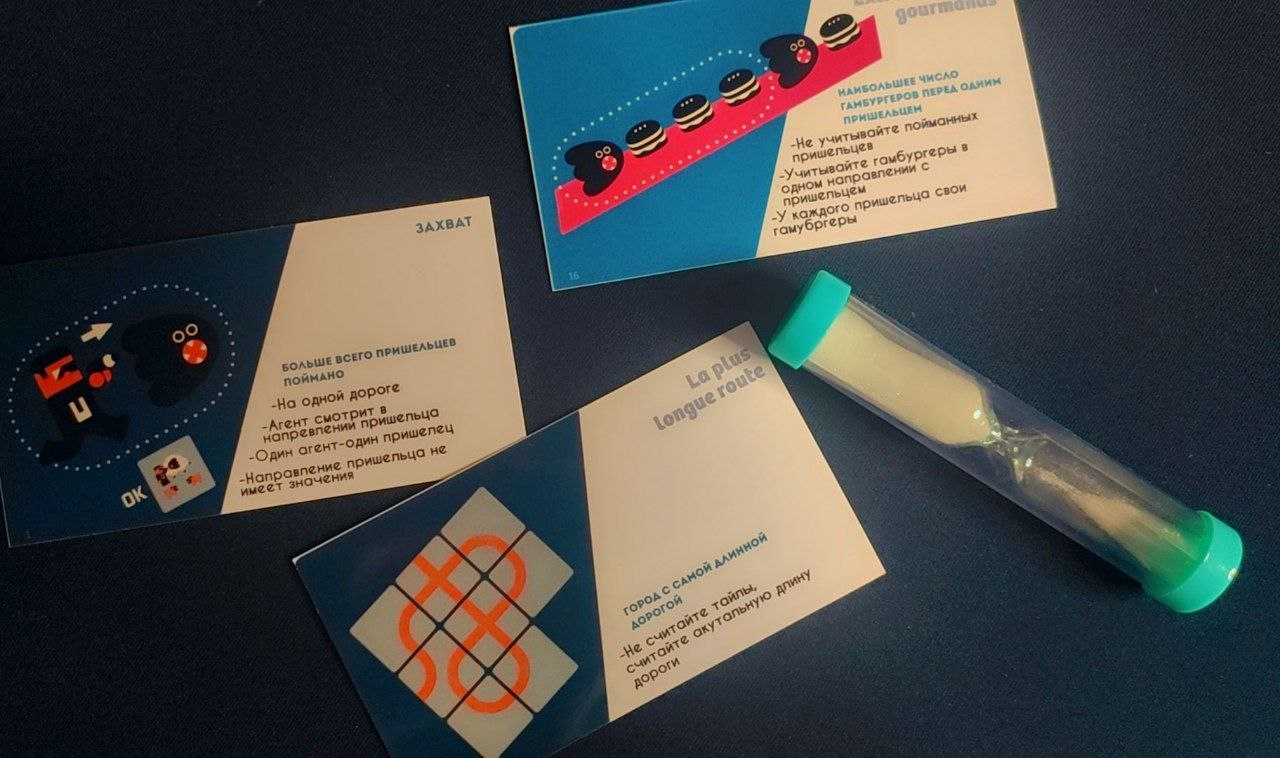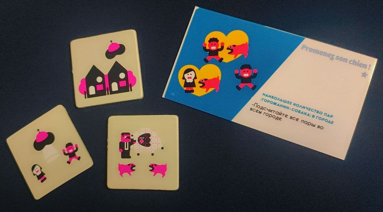 На многих картах вы встретите различные условия, где будут фигурировать эти самые Агенты, Пришельцы и Гамбургеры, которые бегут кто за кем. И ваша цель разместить тайлы города так, что бы наилучшим образом соблюсти условия расположения и направления всех заданных картами объектов.