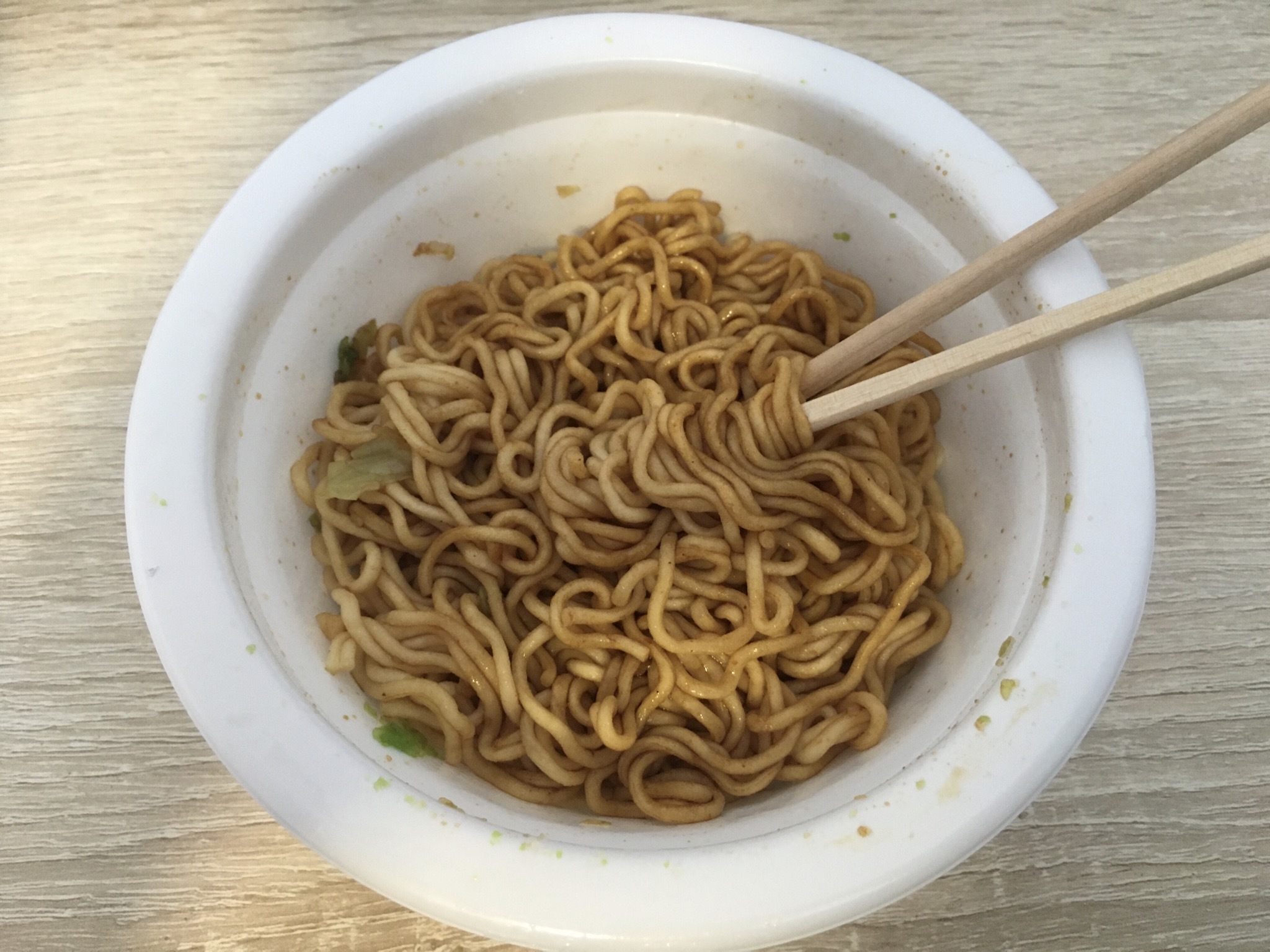 Вуаля. Лапша не подводит имя производителя. Все гармонично и вкусно. Приятная консистенция и отсутствие остроты. Единственное. мне как здоровому кабану 50 гр. - это на два укуса. Как я понял, это формат детского дошика. Ну или тем кто худеет.