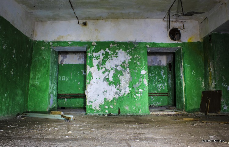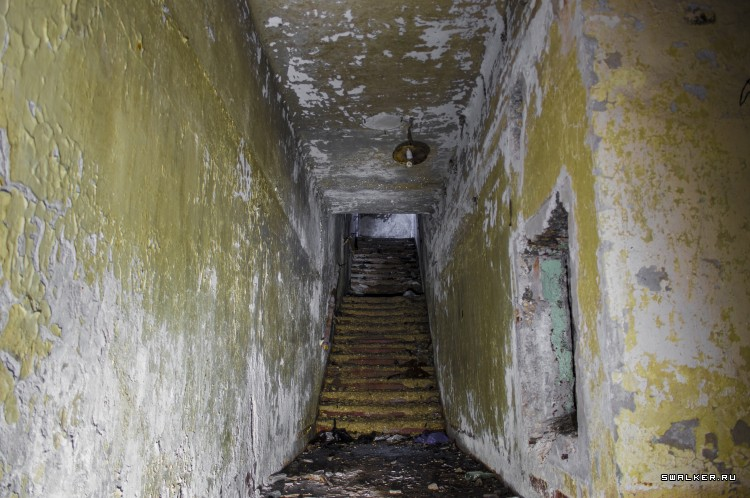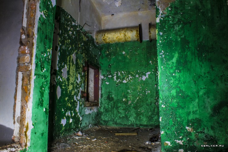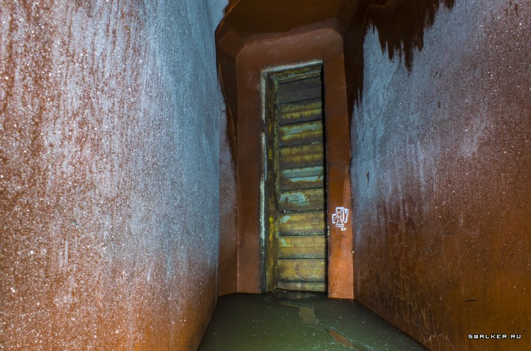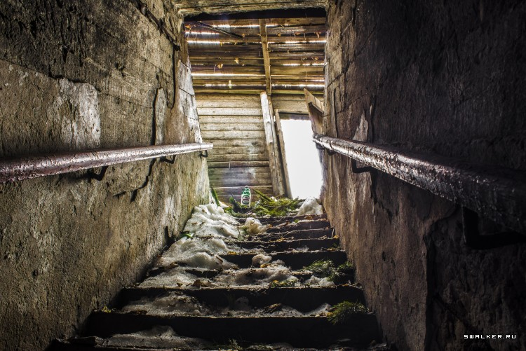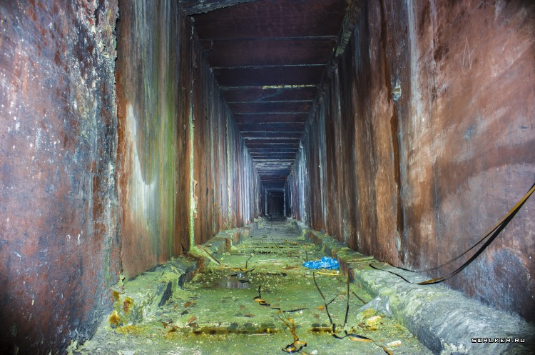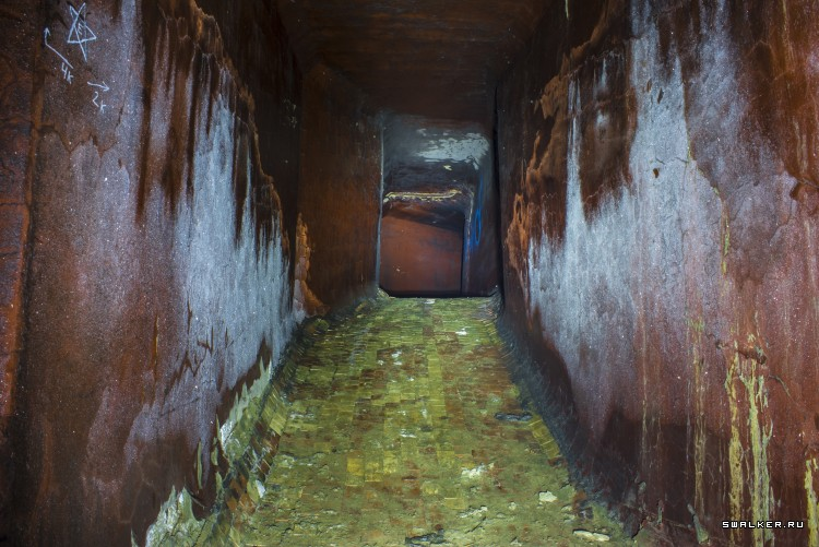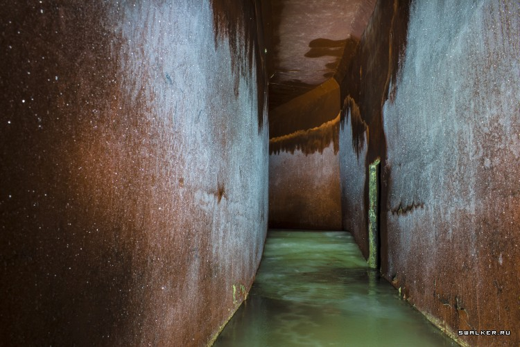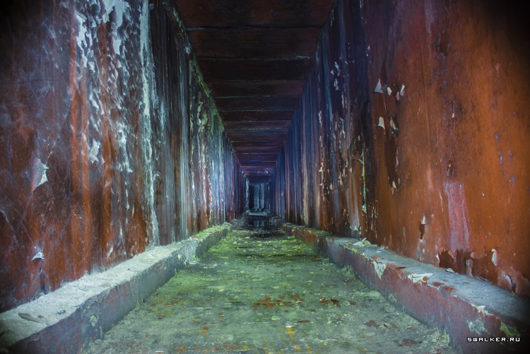 Около центральной дороги, проходящей через всю территорию завода, расположились два наклонника и ВШа. Спустившись, оказываемся в ЗКП. Конечно, за столько лет запустения, и здесь ничего не сохранилось, но интерес представляет форма данного сооружения.
