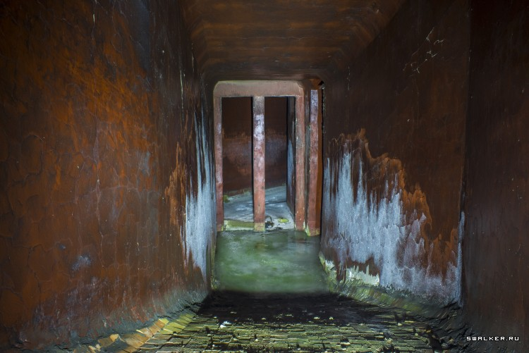 Перебравшись через завал и преодолев ещё один подъём, а затем спуск, оказываемся в длинном и просторном коридоре, ведущем как раз под разрушенный цех.
