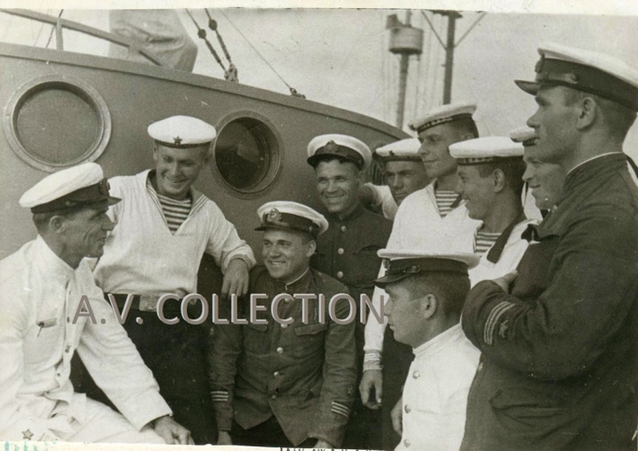 Экипаж сторожевого катера И-40 младшего лейтенанта Ермакова (в центре), 31 мая 1943 г.