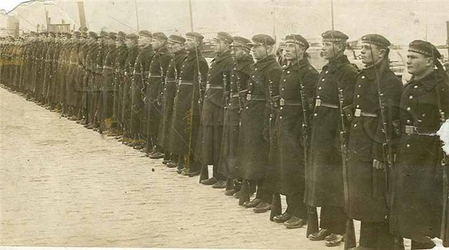 Фото строя матросов и командиров Морпогранохраны НКВД.