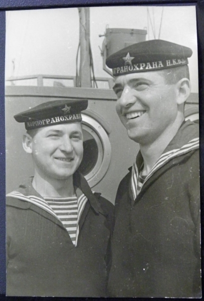 Моряки пограничного отряда,старшина 2-й ст. В.Г.Еремеев, старшина 1-й статьи Н.В.Коробков