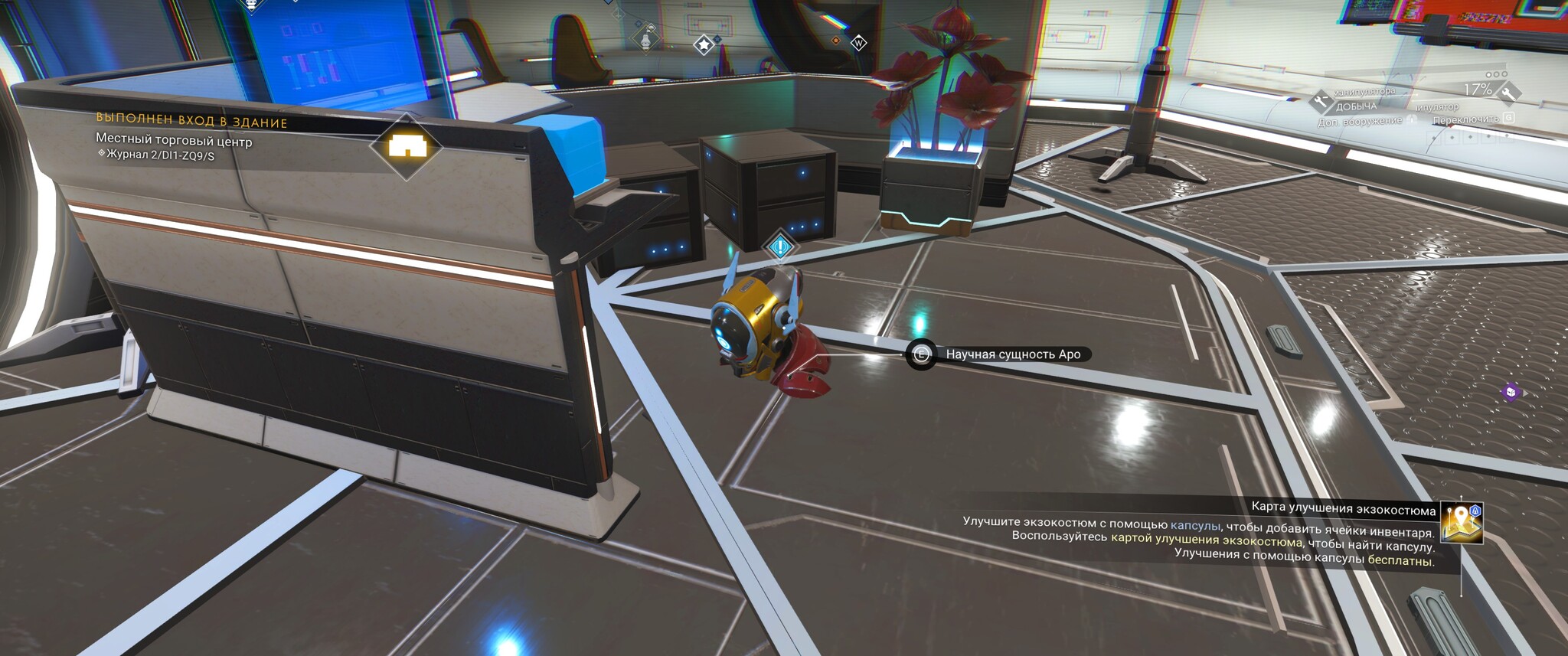 Игра настолько собрана "как попало", что герметик по сюжетному квесту в начале игры берёшь так: Игра находит рядом с игроком постройку, состоящую из двух небольших жилых капсул и искрящегося "Повреждённого Механизма" снаружи. Обычно в таких капсулах стоит монитор, на который можно нажать Е и забрать наниты. Но для этого квеста игра просто переименовывает этот монитор в "Голографический архив", и по нажатию Е включается диалог-описание, как мы нашли в архиве нужный нам герметик. Квест засчитывается. Но вдобавок к этому и поврежденный механизм снаружи игра тоже переименовывает в "Голографический архив", по которому можно активировать тот же диалог с выдачей герметика, хотя нарративно это явно лишнее..., даже по квесту нужна 1 ед. герметика, а не 2, да и диалог активируется тот же самый.