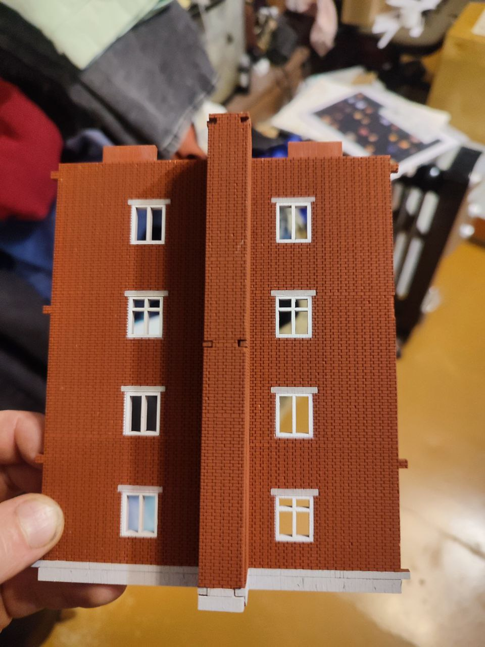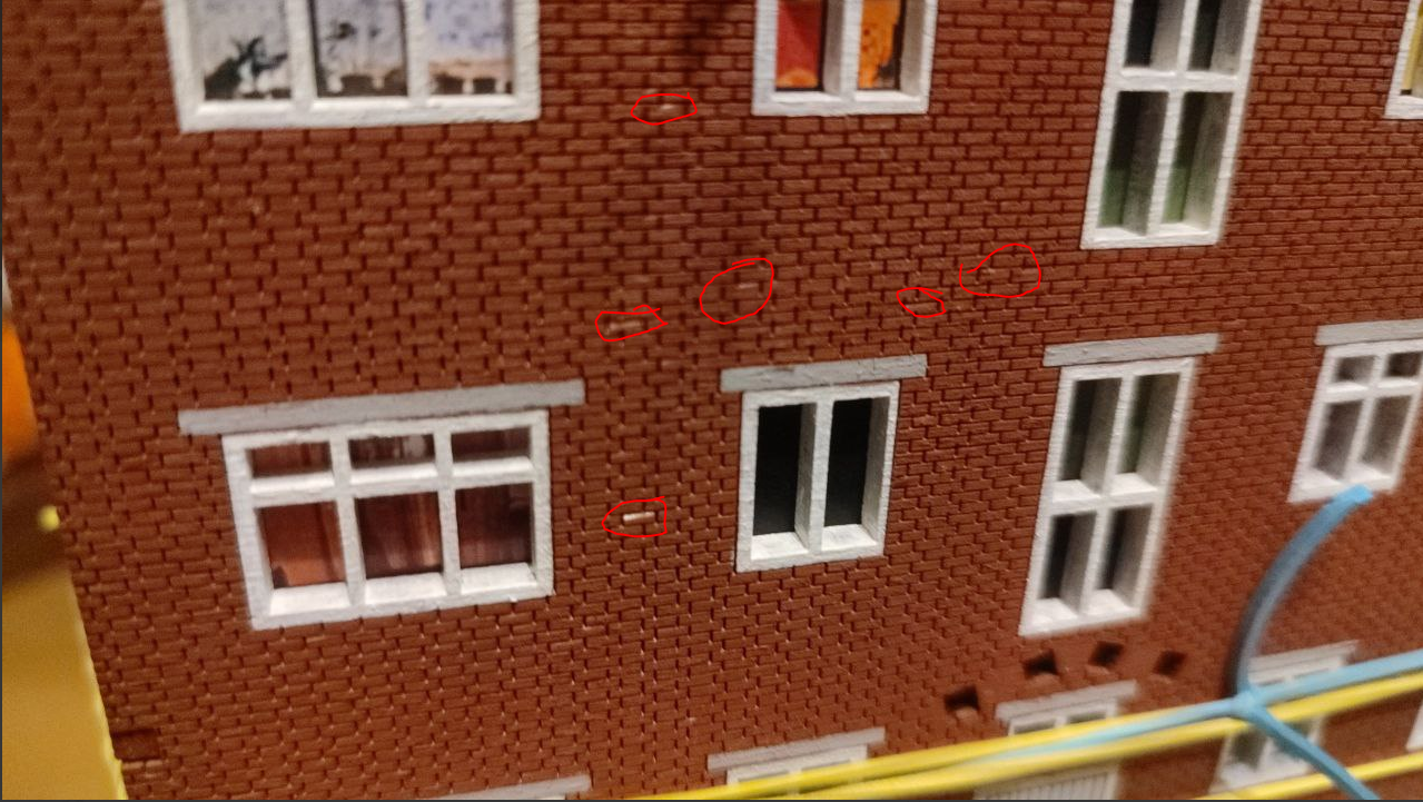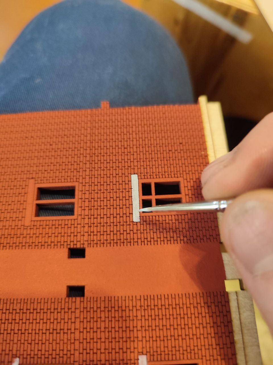 Проблема еще в том, что кирпичики мелкие, и прорезка их довольно глубокая, и они скалываются, как бы аккуратно не работал. Сколько я раз их подкрашивал в процессе работы - не счесть...